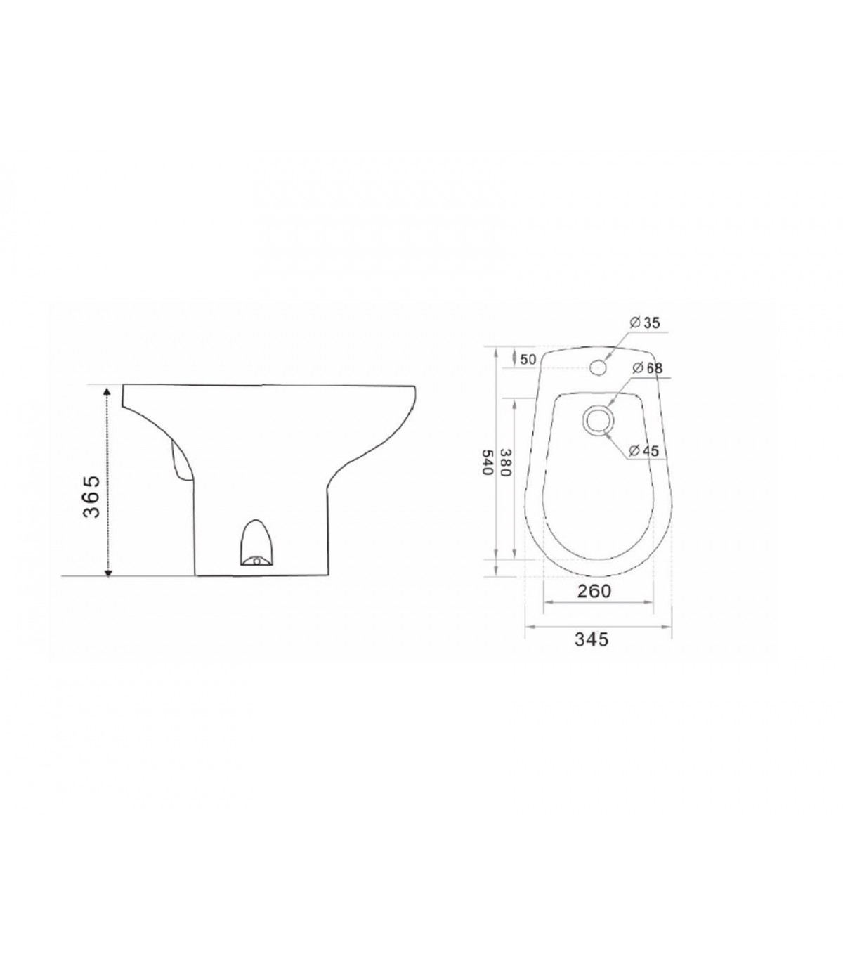 BOLONIA bidé de porcelana con rebosadero integrado. Incluye tornillos de fijación.