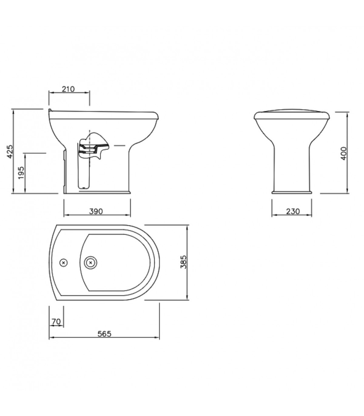 Bidé fabricado en porcelana blanca sanitaria con rebosadero integrado incluye tornillos de fijación al suelo. No incluye grifería.