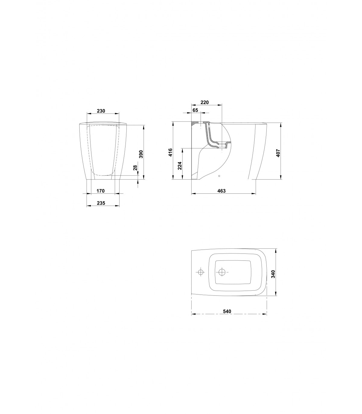 Características del Producto. Bidé monoblock, con rebosadero integradado. Tapa opcional de caída normal o caída amortiguada. Grifería de desagües NO INCLUIDO.