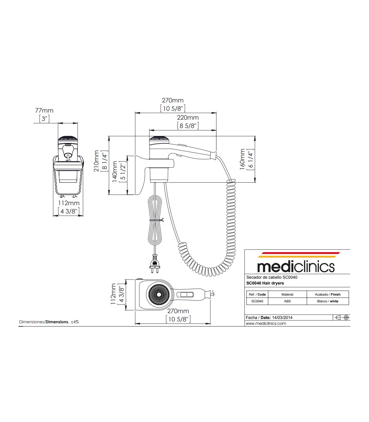 MEDICLINICS SC0040 Secador De Pelo Blanco