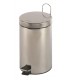 Cubo sanitario circular, de acero noble AISI 430, acabado satinado, 12 L de capacidad. Accionamiento mediante pedal. Adecuado para lavabos de frecuencia de uso alta. Modelo apto para colectividades. Generalmente, va acompañado de un dispensador de papel higiénico y escobillero y complementado con una secadora de manos por aire caliente