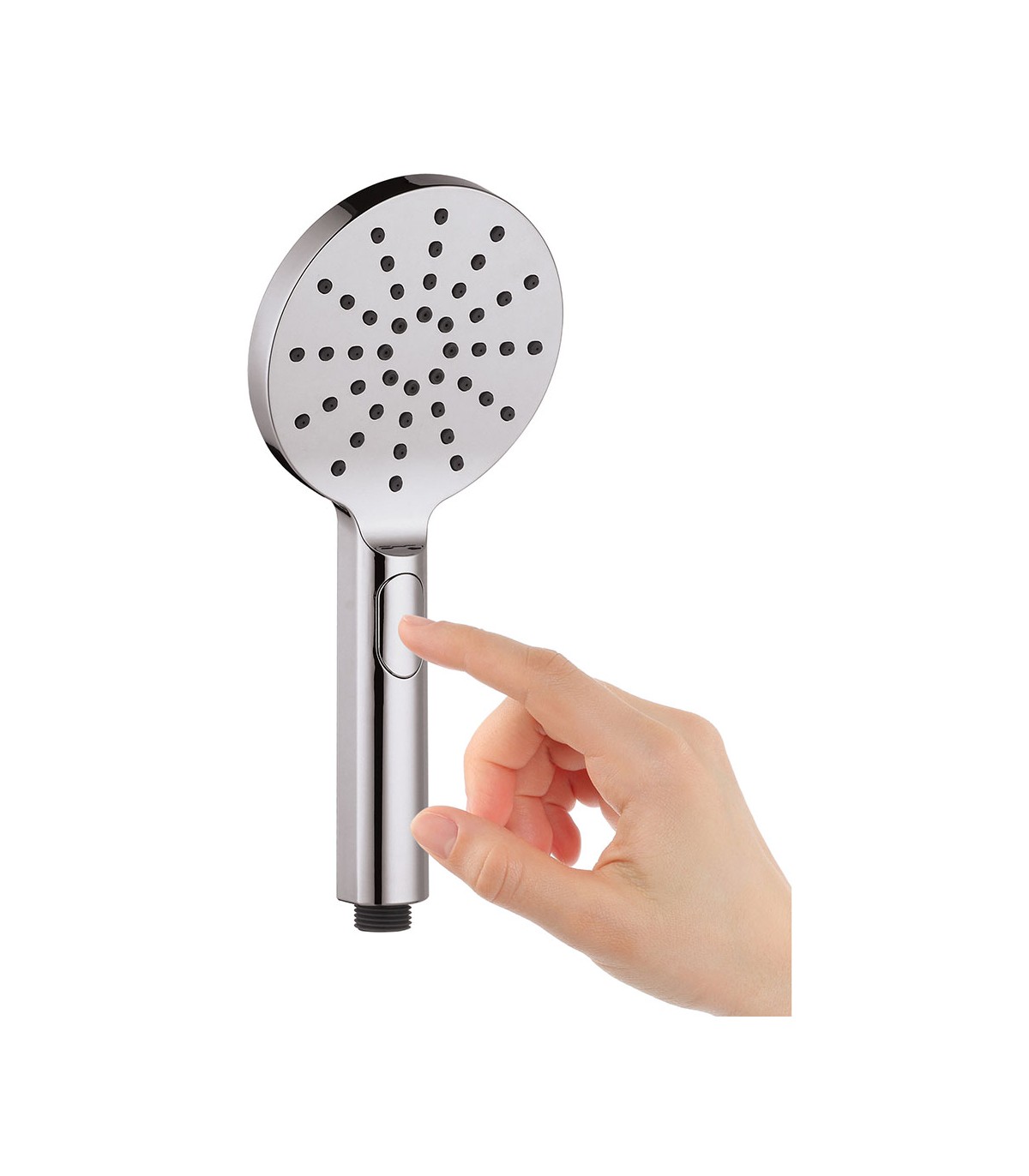 Mango ducha de mano maneral redondo 3 posiciones NIZA. Fabricada en ABS de alta resistencia. La ducha de mano está acabada en cromo brillo, aporta un toque elegante a su baño.