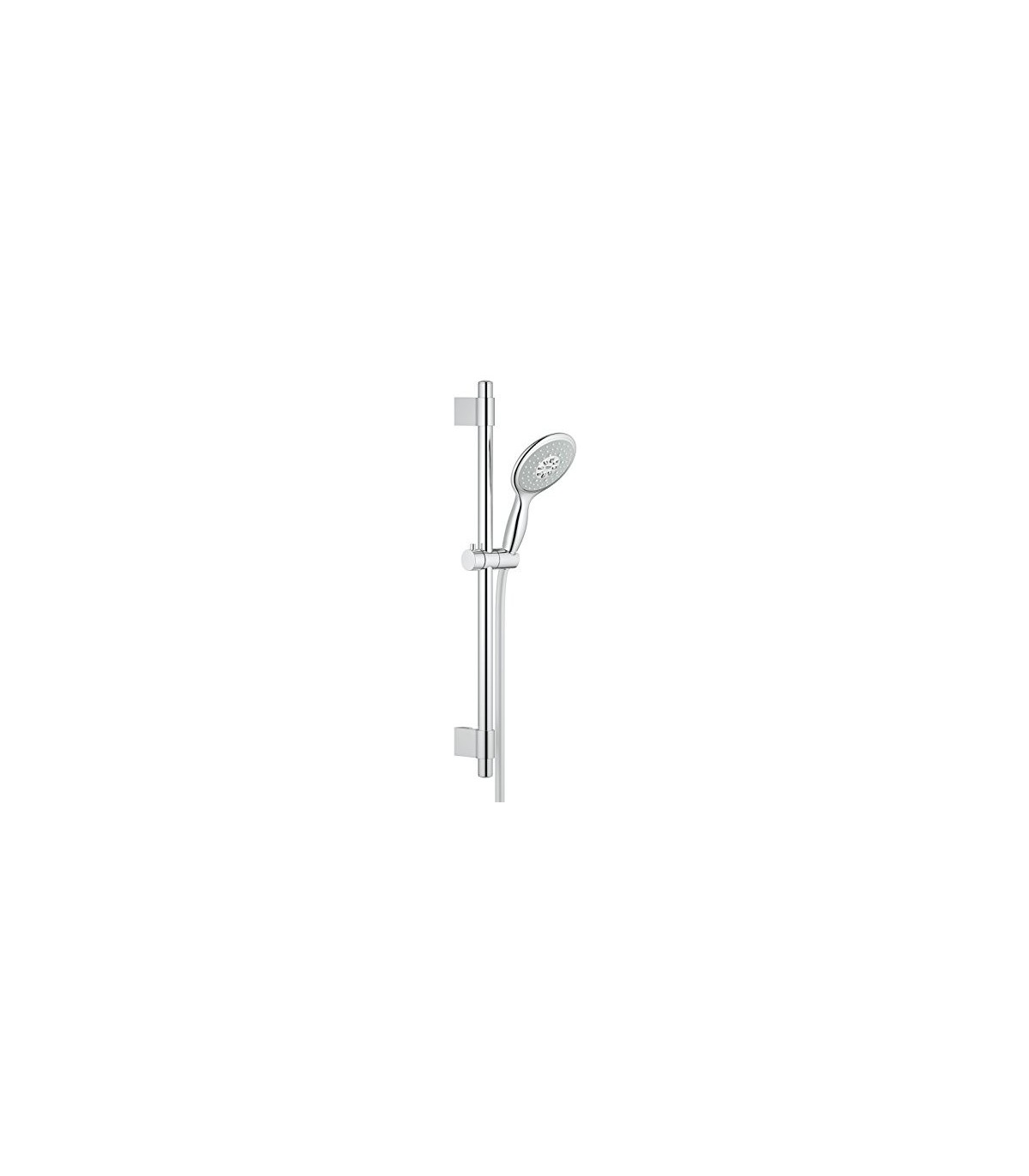 Compuesto por: Teleducha Power &, Soul 130 mm (27 673 000) GROHE EcoJoy® limitador de caudal 9,5 l/min Barra de ducha de 60 cm (27 784), con soportes de pared metálicos GROHE QuickFix® Plus sistema de rápida instalación Flexo Silverflex de 1,75 m. (28 388) Sistema antitorsión Twistfree GROHE DreamSpray® distribución perfecta del agua por todo el cabezal