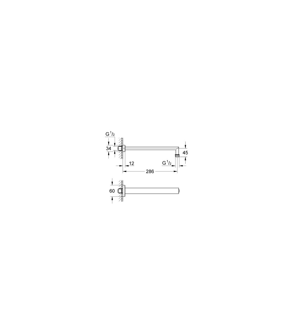 GROHE 27 709 000 Brazo de ducha cuadrado de 286 mm