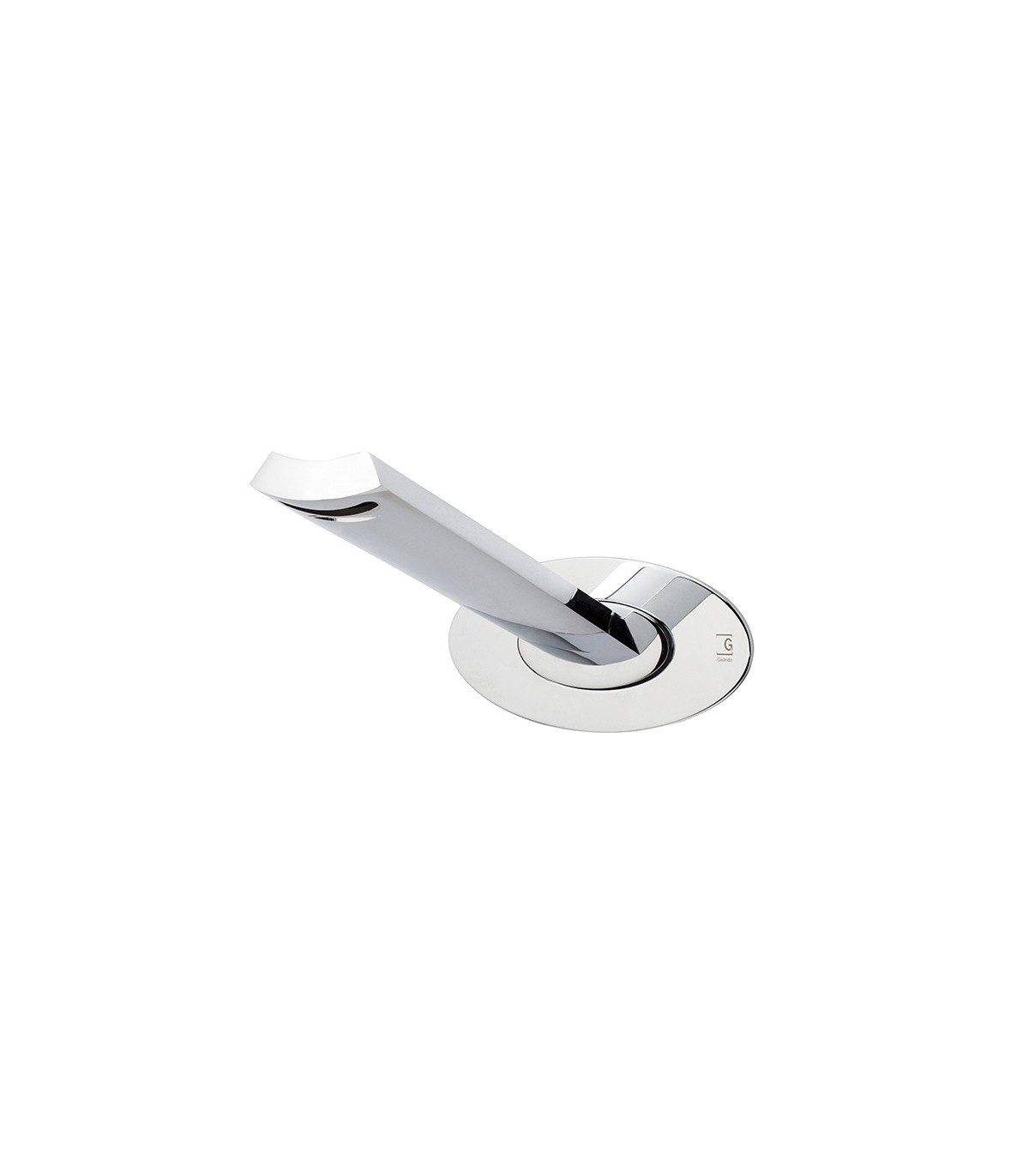 Caño mural Jump. Atesora los principios estéticos del más puro funcionalismo americano totalmente revitalizado. Su rasgo más destacado es su caño en forma de trampolín donde el agua fluye en forma de cascada controlada. Diseñada por el prestigioso proyectista Rémie Theberge.
