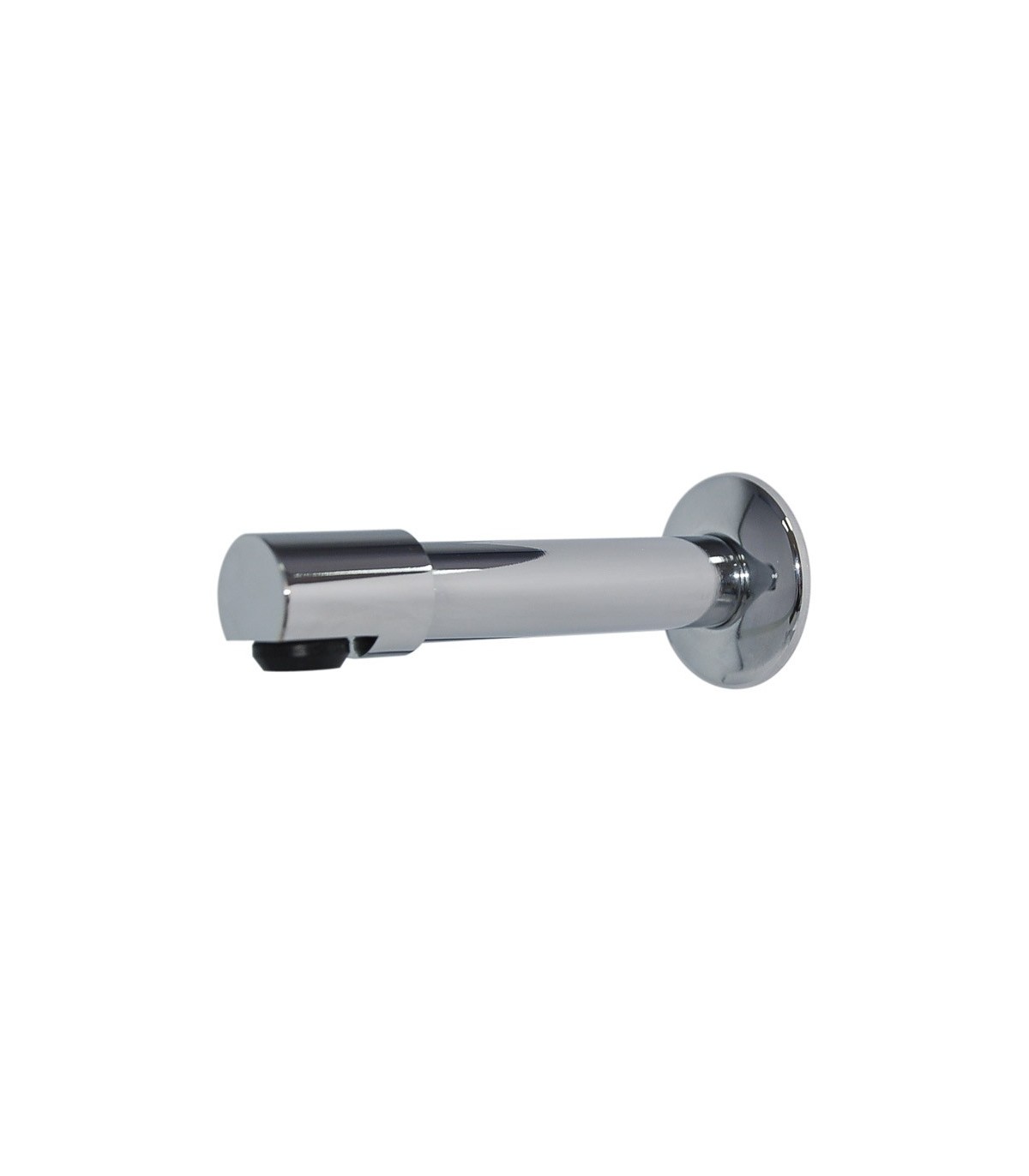 Caño recto para fijación sobre muro en latón cromado con rompeaguas.