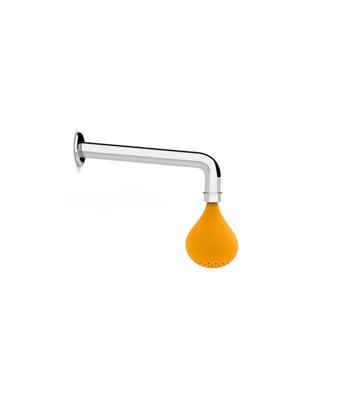Ducha de silicona Drop con brazo de pared de 41 cm. Dentro de la colección de duchas, sin duda es la más especial tanto a nivel formal ( imita una gota de agua ) como por el material empleado: la silicona , de excelentes propiedades antibacterianas.