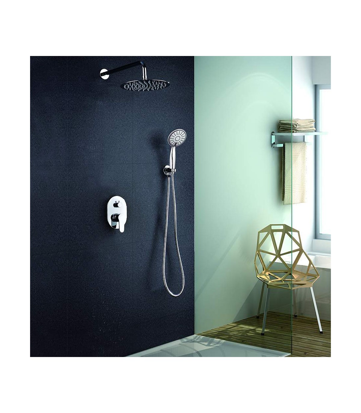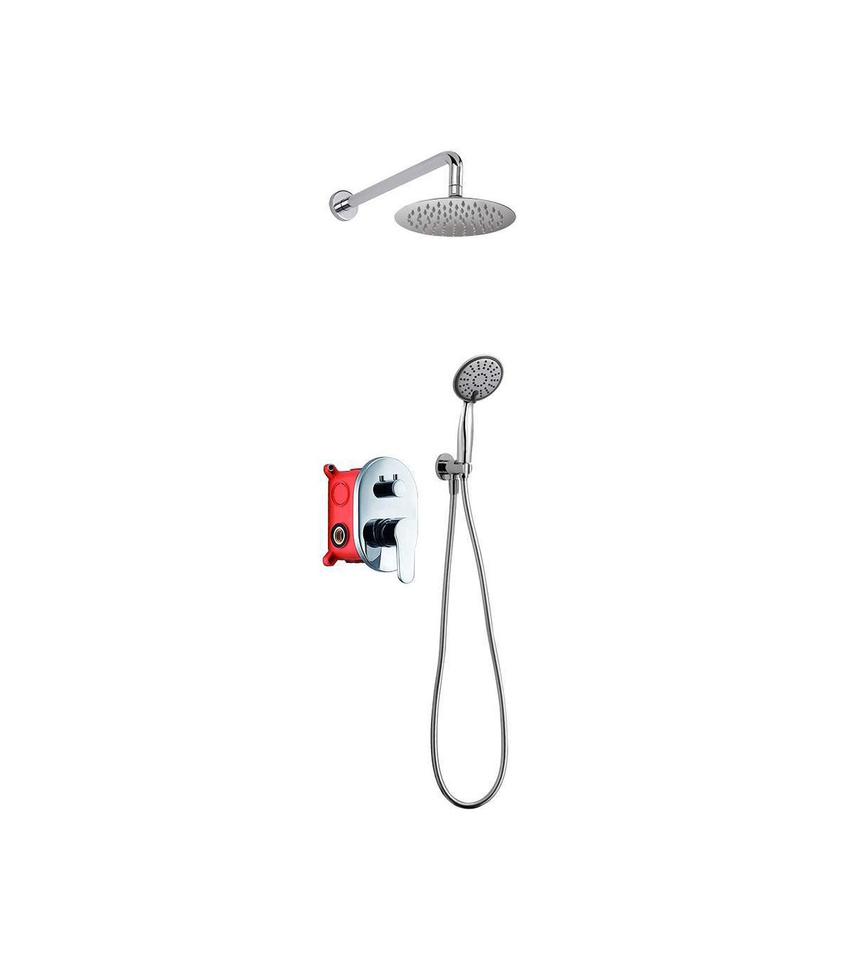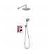 Salida pared. Acabado redondo en cromo brillo. Grifo de ducha de empotrar de sistema monomando, con 2 vías para salida agua a través del duchón rociador superior.
