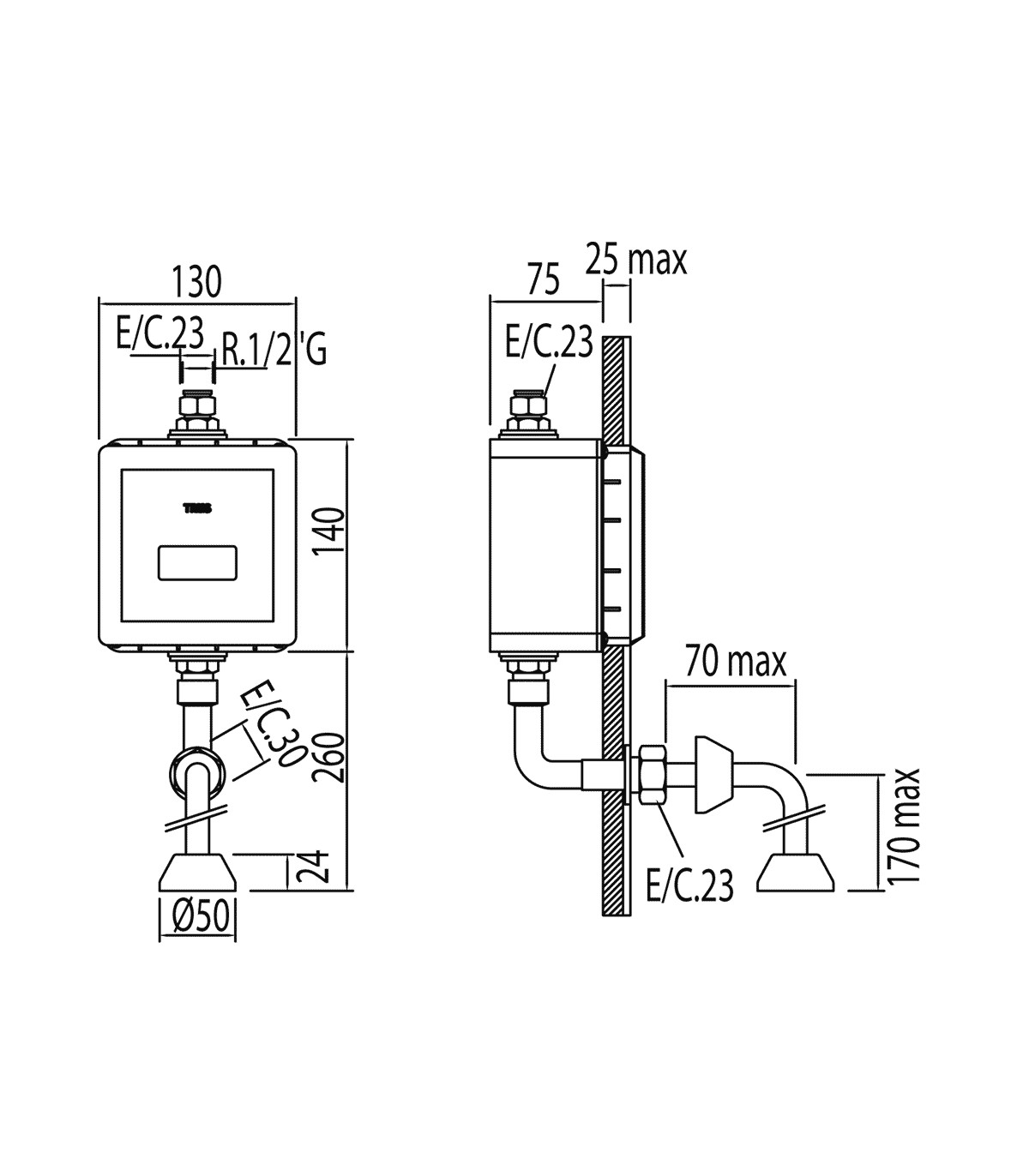 Grifo electrónico empotrado para urinario Descarga la ficha técnica aquí