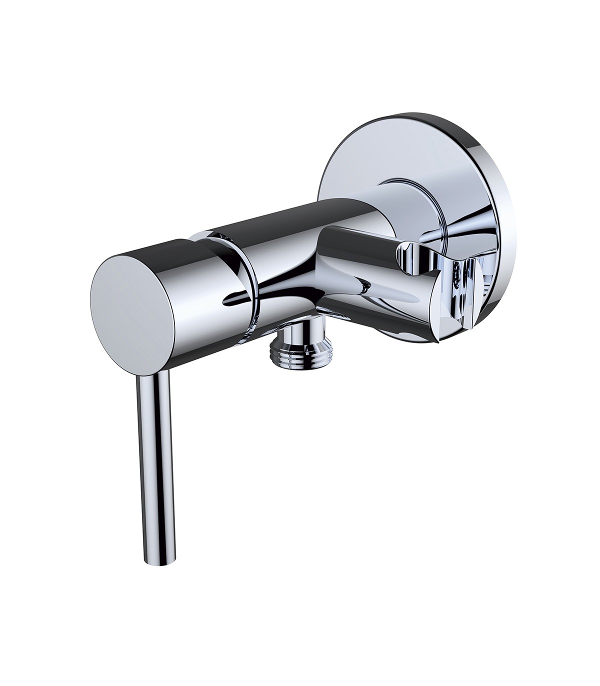 Grifo mezclador empotrado para ducha higiénica con toma de agua para salida de cisterna. Incorpora un práctico soporte para la ducha. Incluye flexo inoxidable de 1,20 m y duchita cromada.