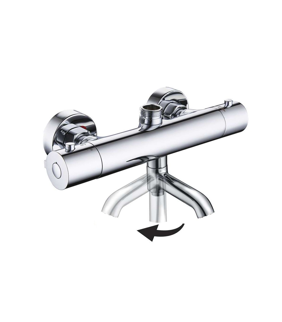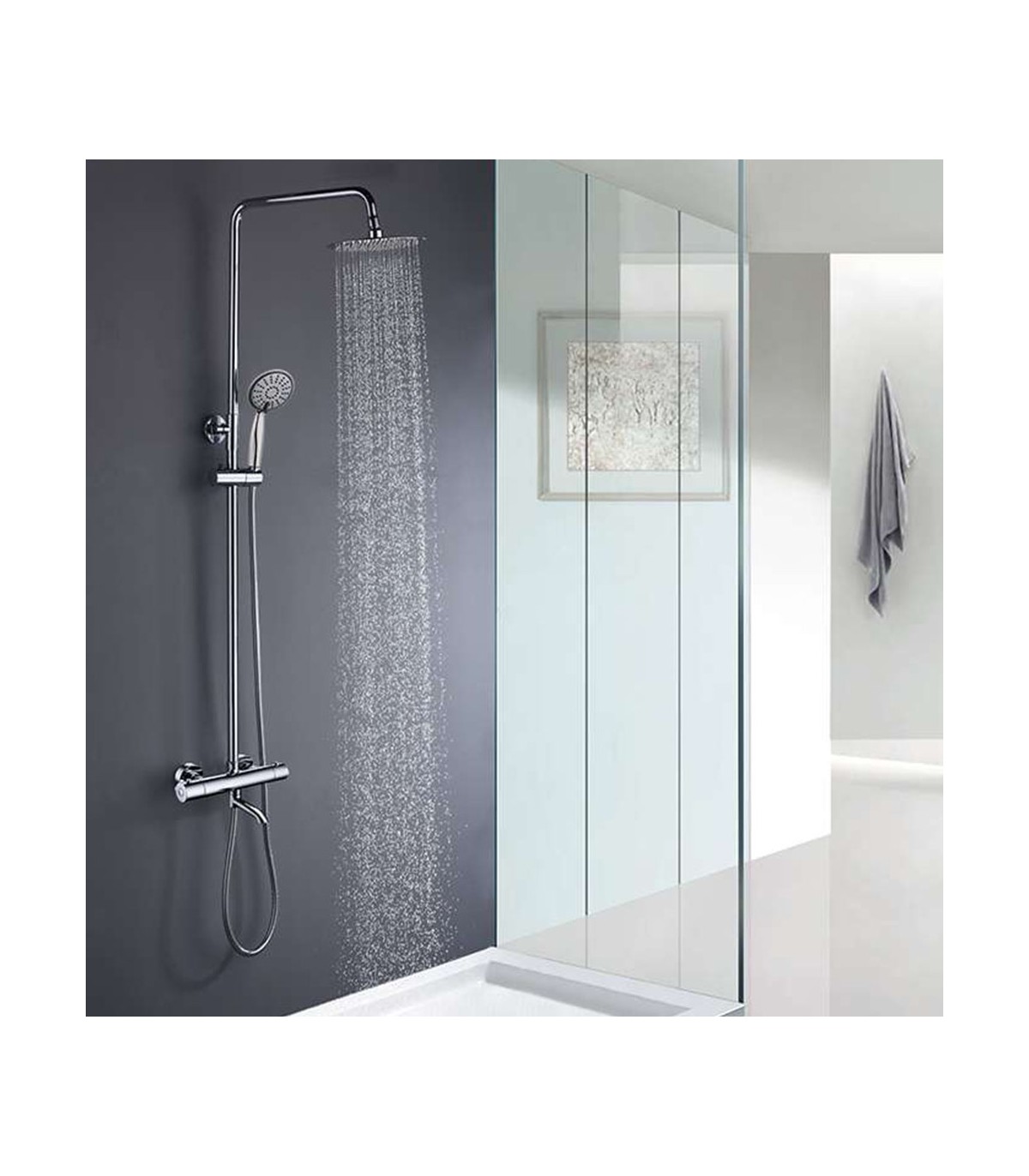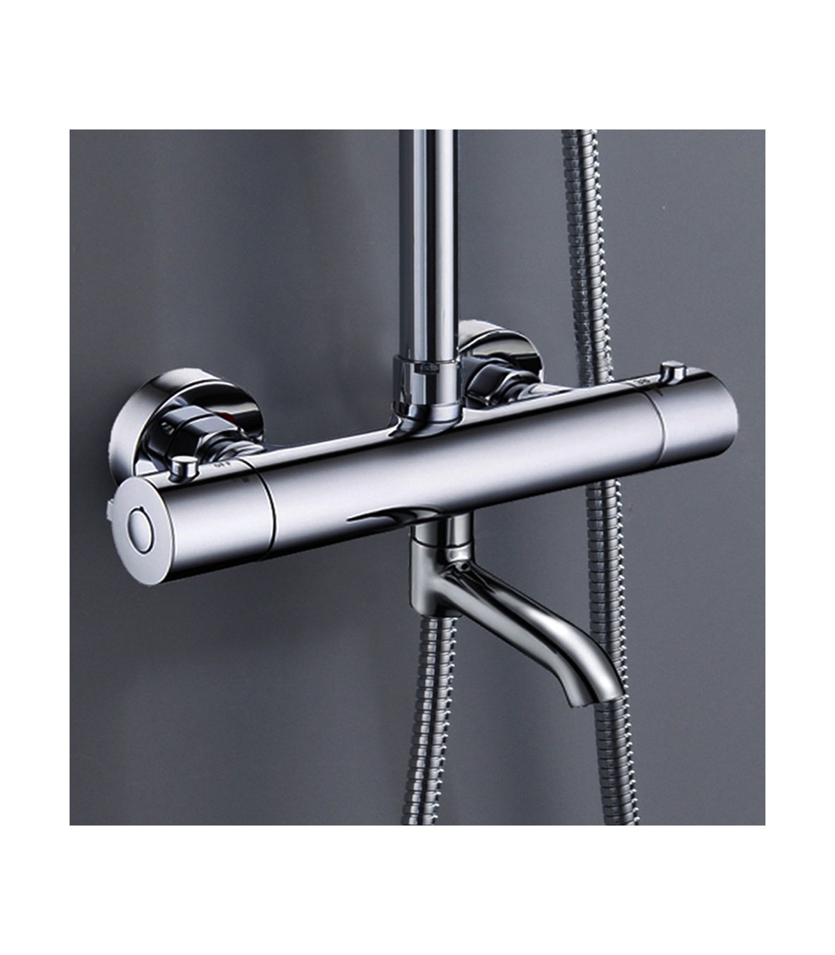 Columna de ducha termostática extralarga CON CAÑO Quad. Con tubo redondo extensible de 100 a 150 cm. Diseño ergonómico con caño la columna de ducha está especialmente diseñada para cualquier usuario de forma sencilla.