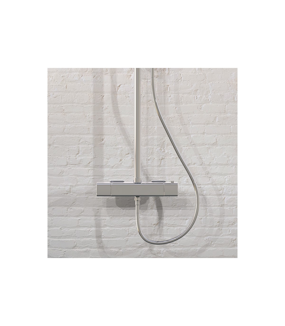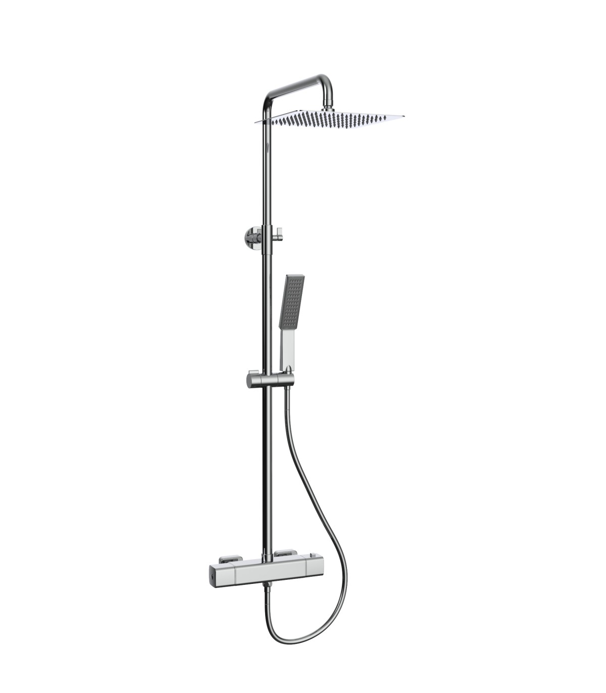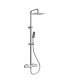 Colección Vela. Columna de ducha termostática con termoelemento de cera. Cuerpo cuadrado. Acabado cromo.