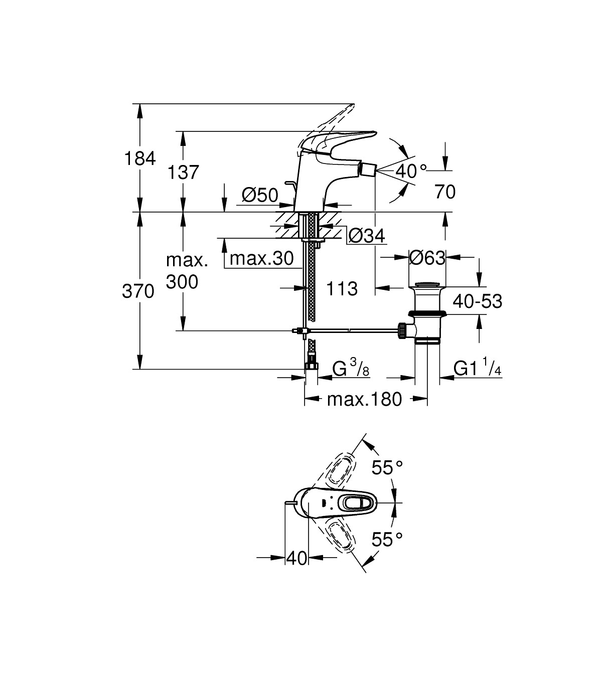GROHE 33 565 003 Eurostyle New Grifo Bidé S Con Vaciador