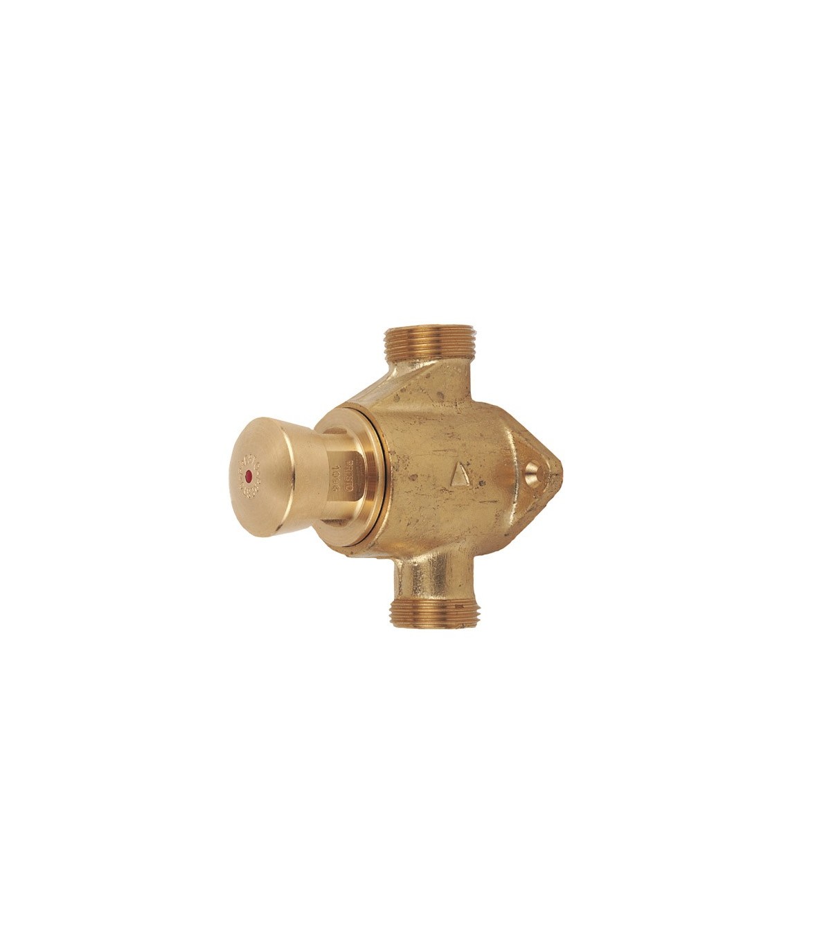 Grifo temporizado antirrobo para instalación tras tabique con cuerpo y pulsador de latón sin cromar.