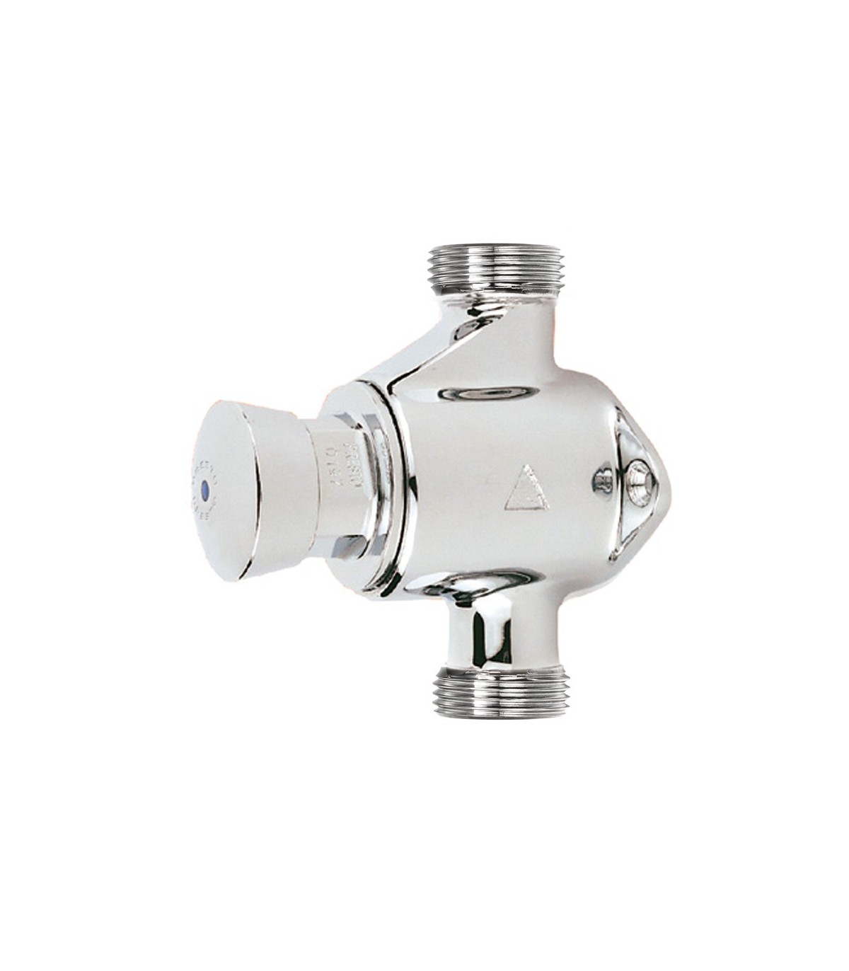 Grifo temporizado de un agua para instalación mural con cuerpo de latón cromado.