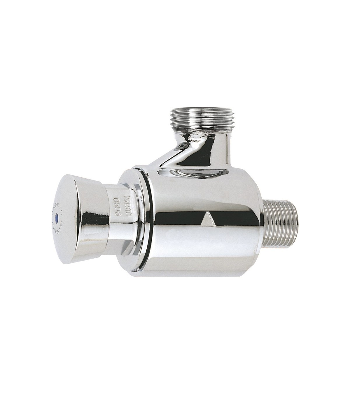 Grifo temporizado de un agua para instalación vista con cuerpo de latón cromado y regulador automático de caudal.