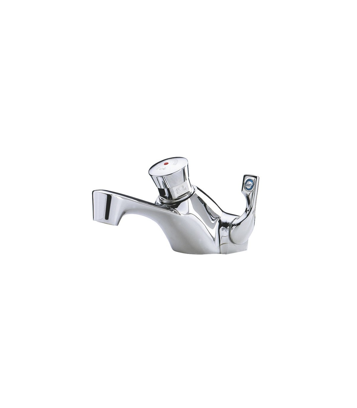 Grifo temporizado mezclador para instalación sobre repisa con cuerpo de latón cromado.