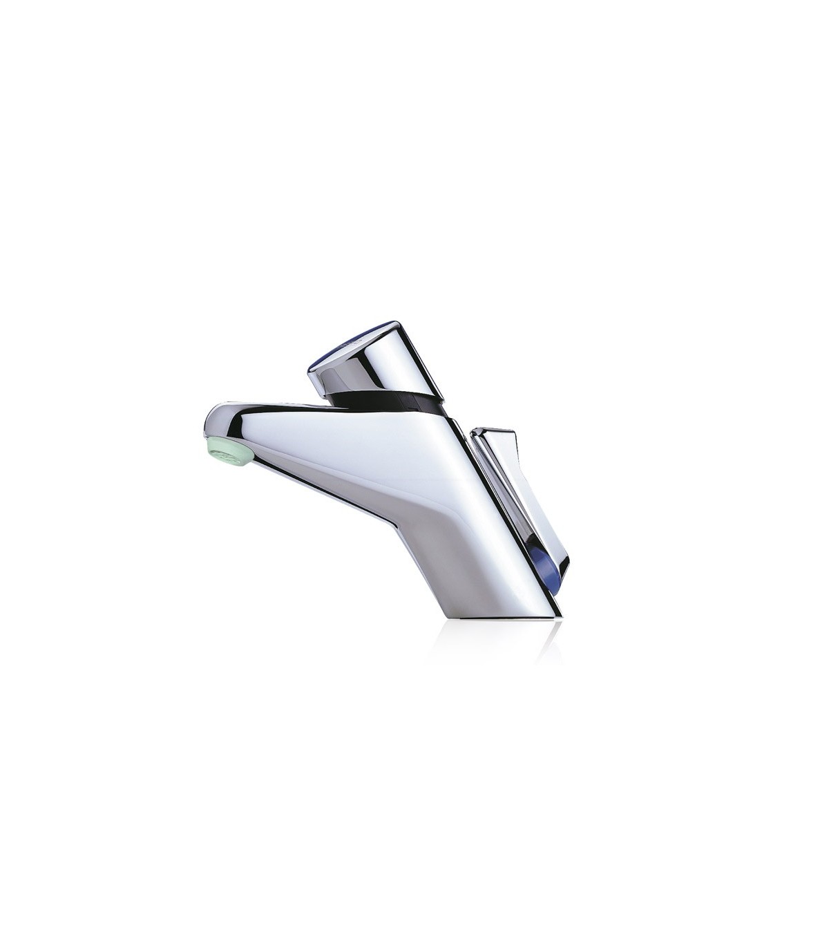 Grifo temporizado ecológico mezclador para instalación sobre repisa con cuerpo de latón cromado. Con limitador de temperatura.