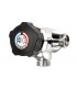 Grifo temporizado mezclador para instalación mural con cuerpo de latón cromado y pulsador en poliacetato negro.