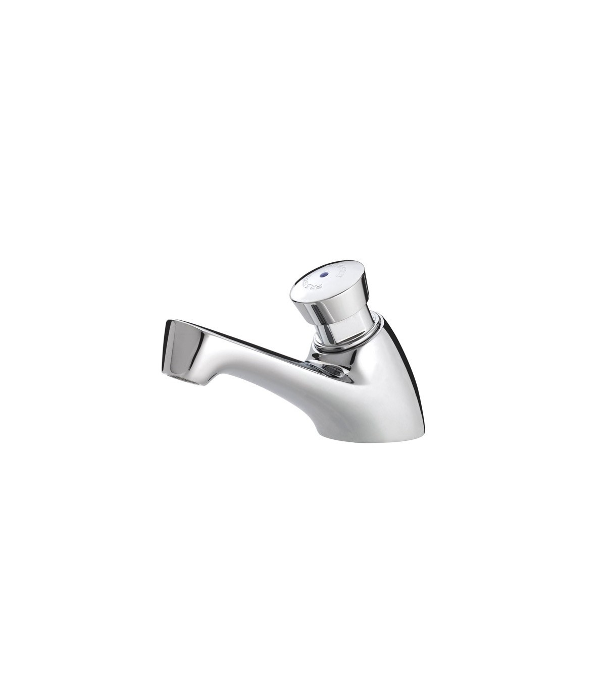Grifo temporizado de un agua para instalación sobre repisa con cuerpo de latón cromado.