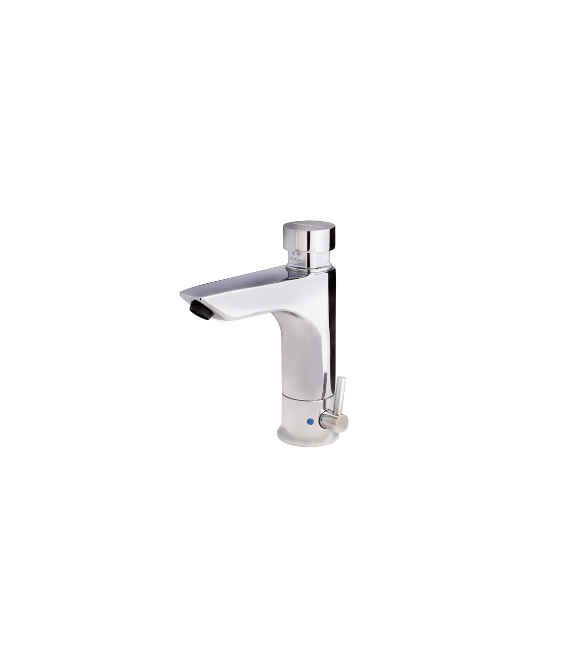 Grifo temporizado mezclador para instalación sobre repisa con cuerpo de latón cromado.