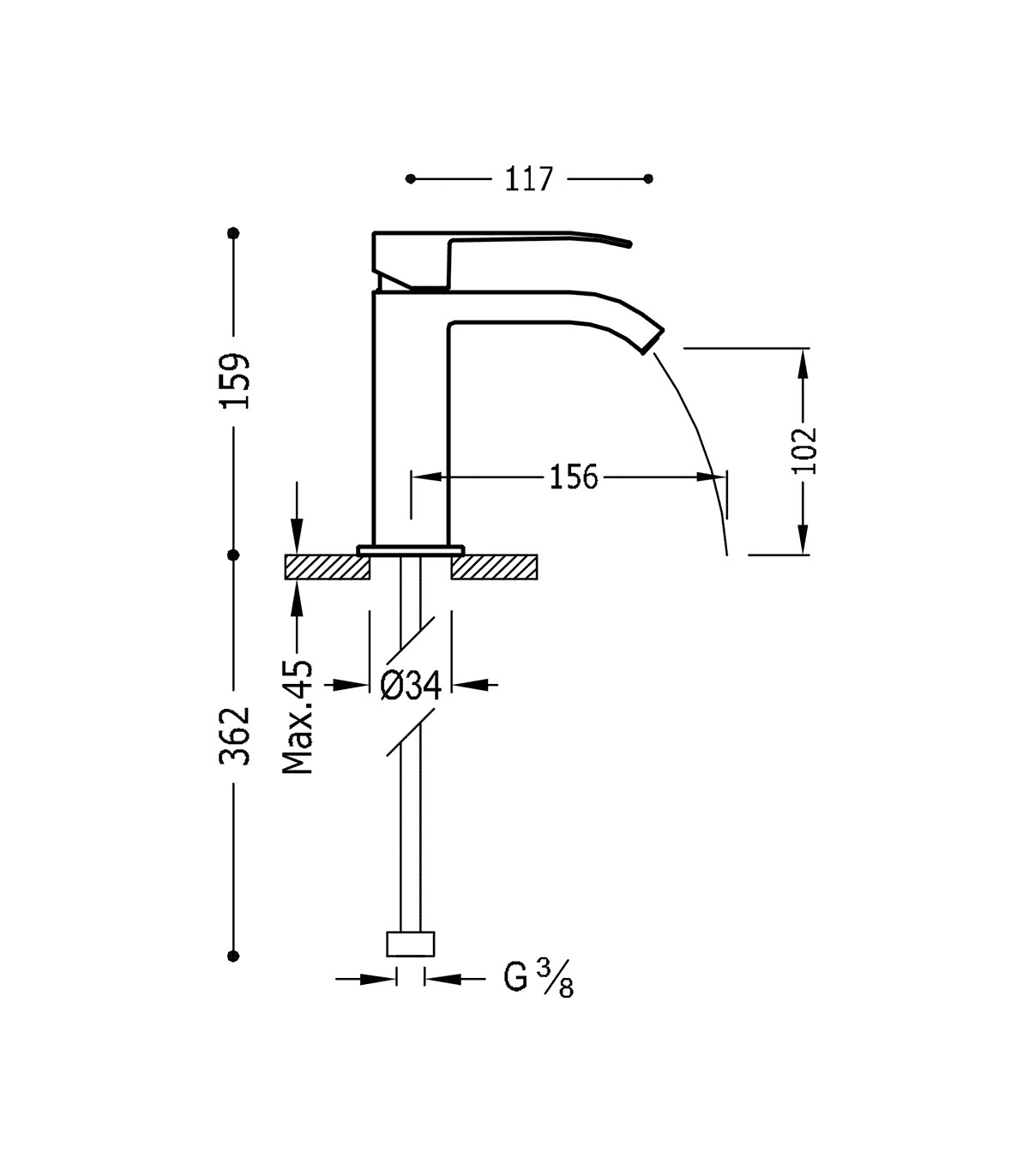 CUADRO-TRES es una amplia colección de grifería con infinidad de posibilidades. Imposible encontrar un lavabo que se resista a tanto diseño y versatilidad. El monomando empotrado está pensado para lavabo exento sin orificio para la griferia.