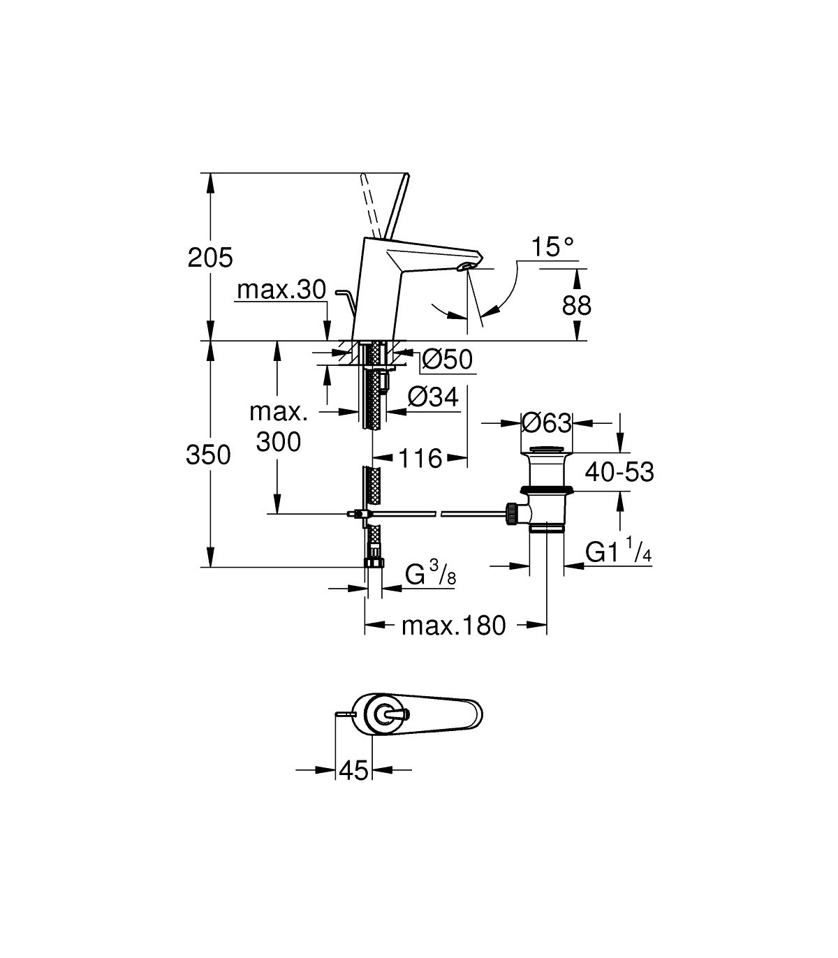 Eurodisc Joystick Parte Interior para monomandos Lavabo Mural. Cartucho Joystick con tecnología GROHE FeatherControl. Set de instalación. Fabricado en Latón.