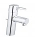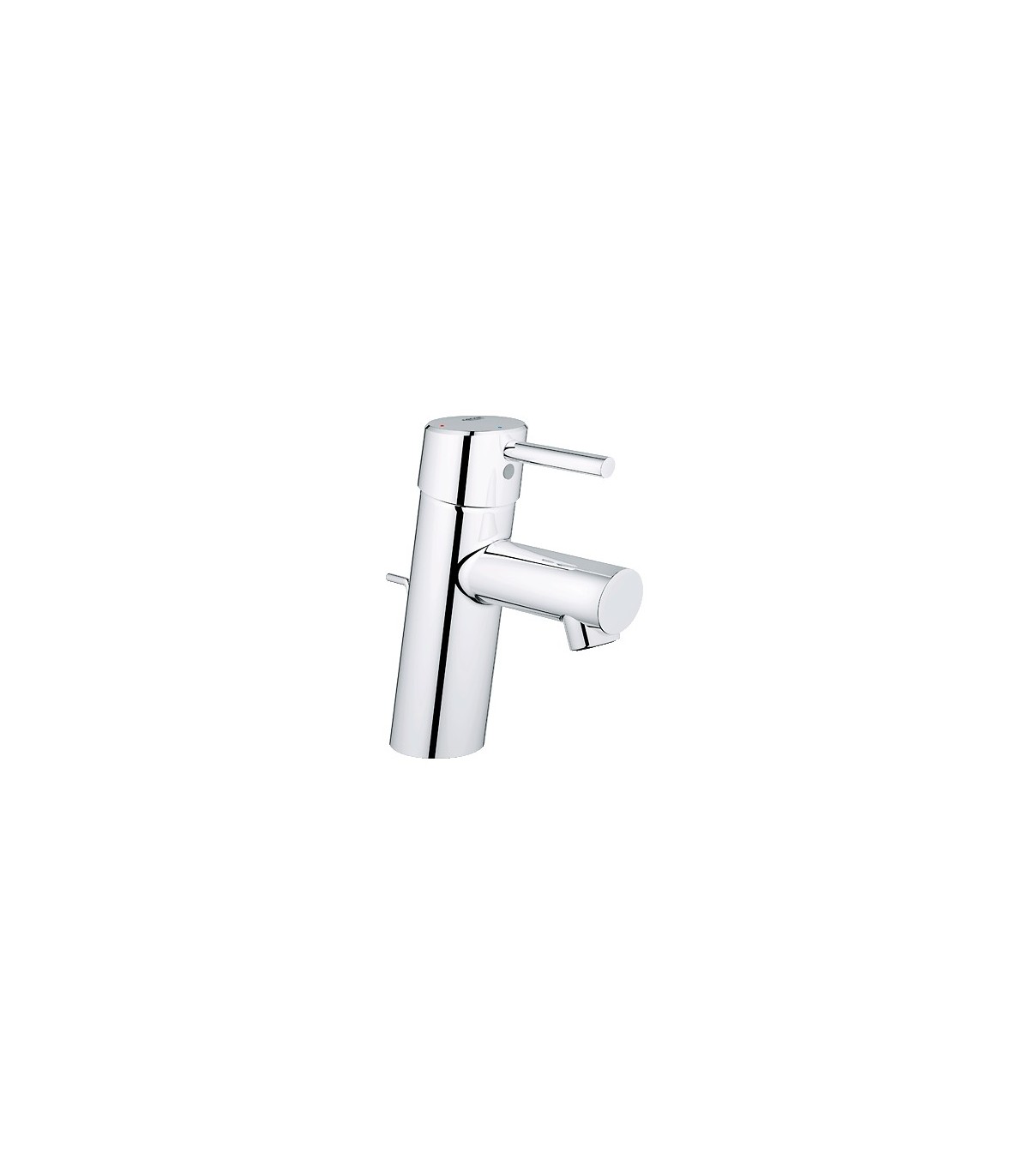 Concetto NEW monomando para lavabo tamaño S con vaciador automático incluido. Este mezclador tiene un tamaño bastante modesto que se adapta a los lavabos más pequeños. Gracias a su forma oblicua, el grifo estará siempre listo para cuando lo quieras utilizar, y el brillante acabado cromado GROHE StarLight hará que destaque. Además, está equipado con un vaciador automático empotrado en su parte tras
