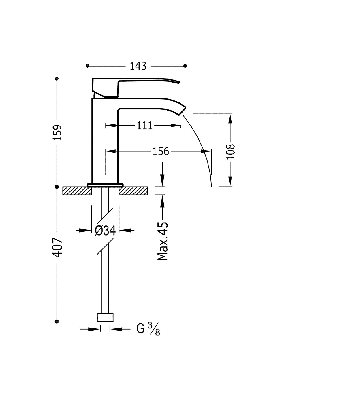 CUADRO-TRES 00611001 Grifo Lavabo con caño Cascada libre