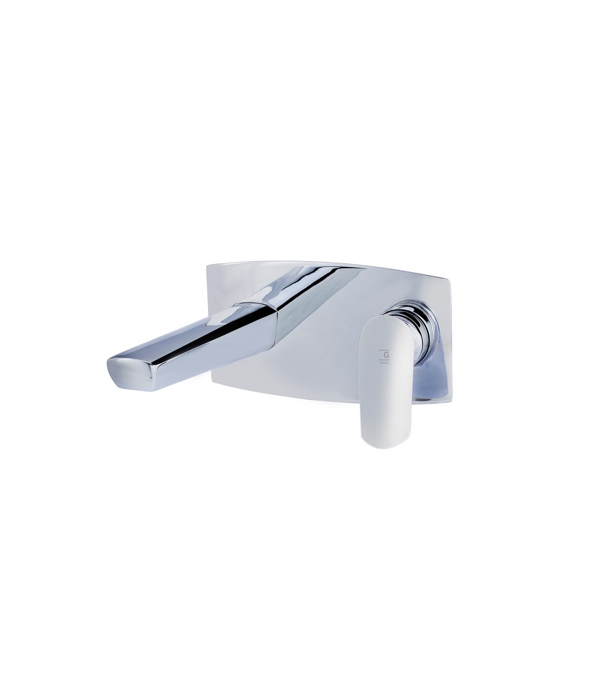 Grifería monomando de lavabo mural. Colección de líneas refinadas y elegantes que se adaptan a todo tipo de ambientes. Su original maneta de forma ondulada destaca en inclinación del escultural diseño del cuerpo del grifo. Una grifería que decora el espacio de baño con personalidad siendo piezas prácticas y ergonómicas muy confortables con el toque de distinción perfecto.