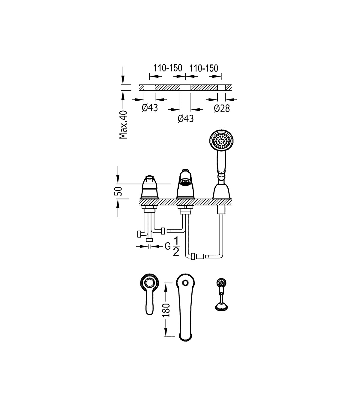 TRES-CLASIC 24214501 Grifo Bañera De Repisa Cromo