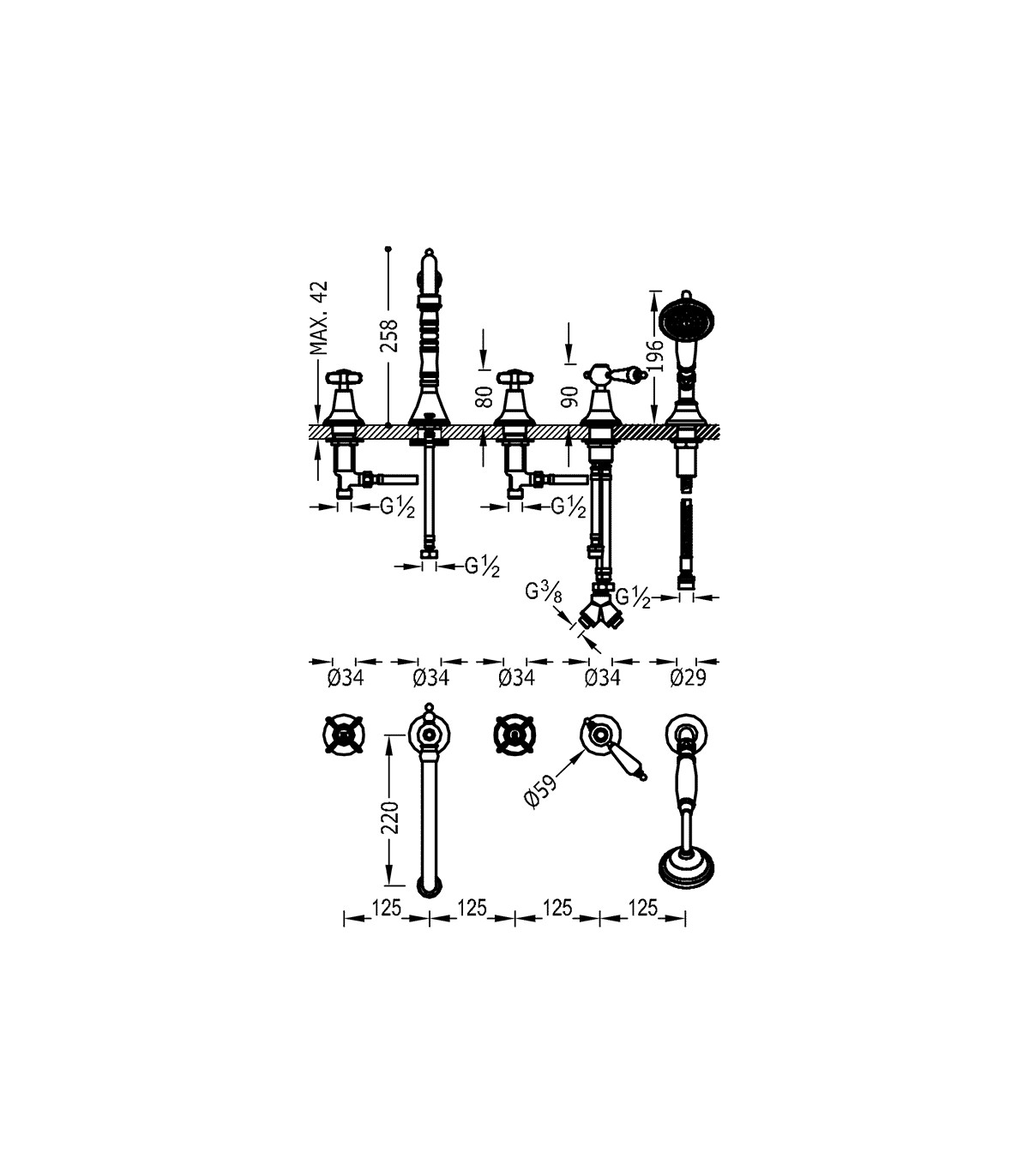 TRES-CLASIC 24214601 Grifo Batería Bañera De Repisa Cromo