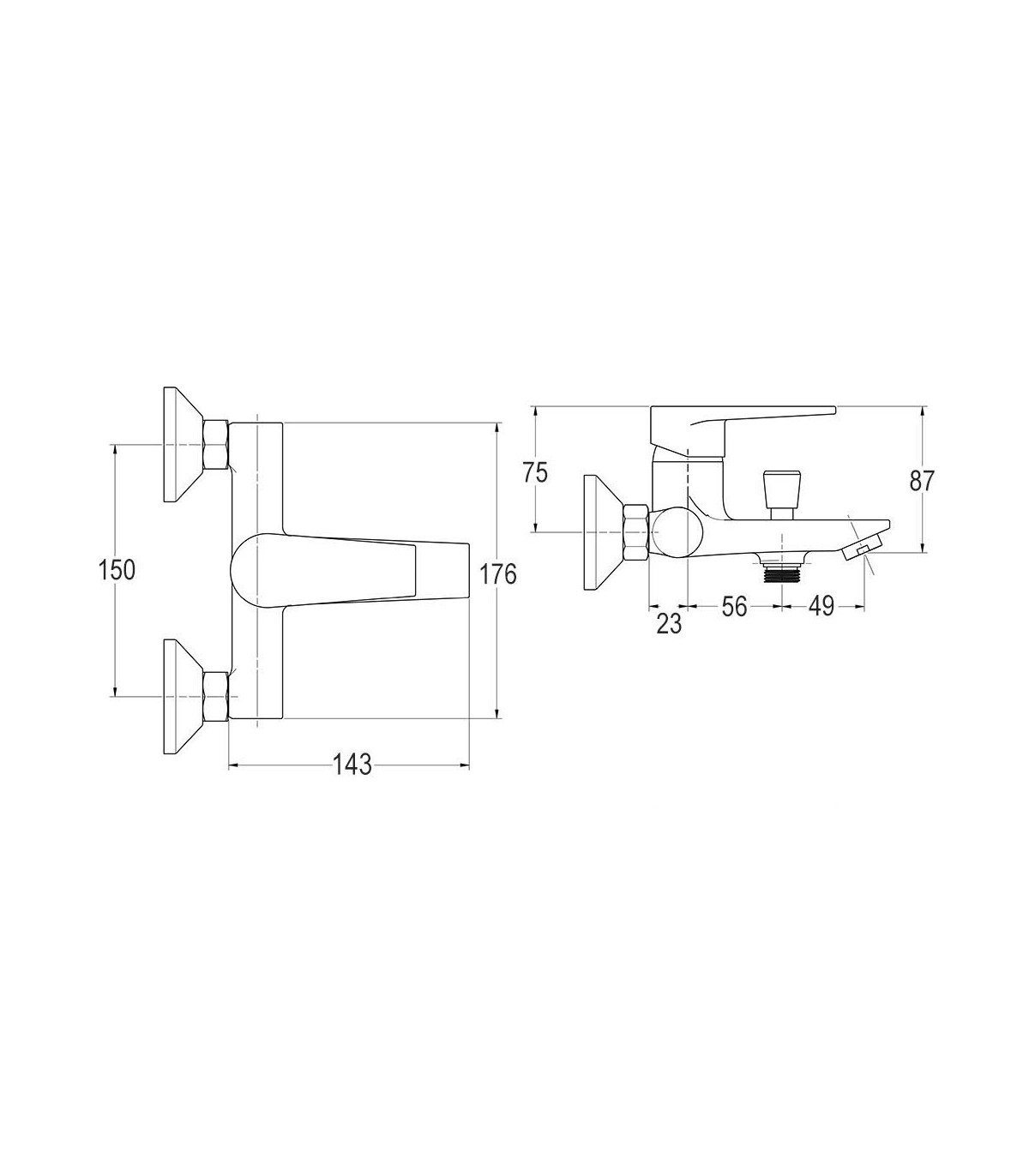 Grifo para pared de dos vías. El grifo monomando de pared para bañera cuenta con desviador de dos vías, una salida para la bañera o para llenar un cubo.
