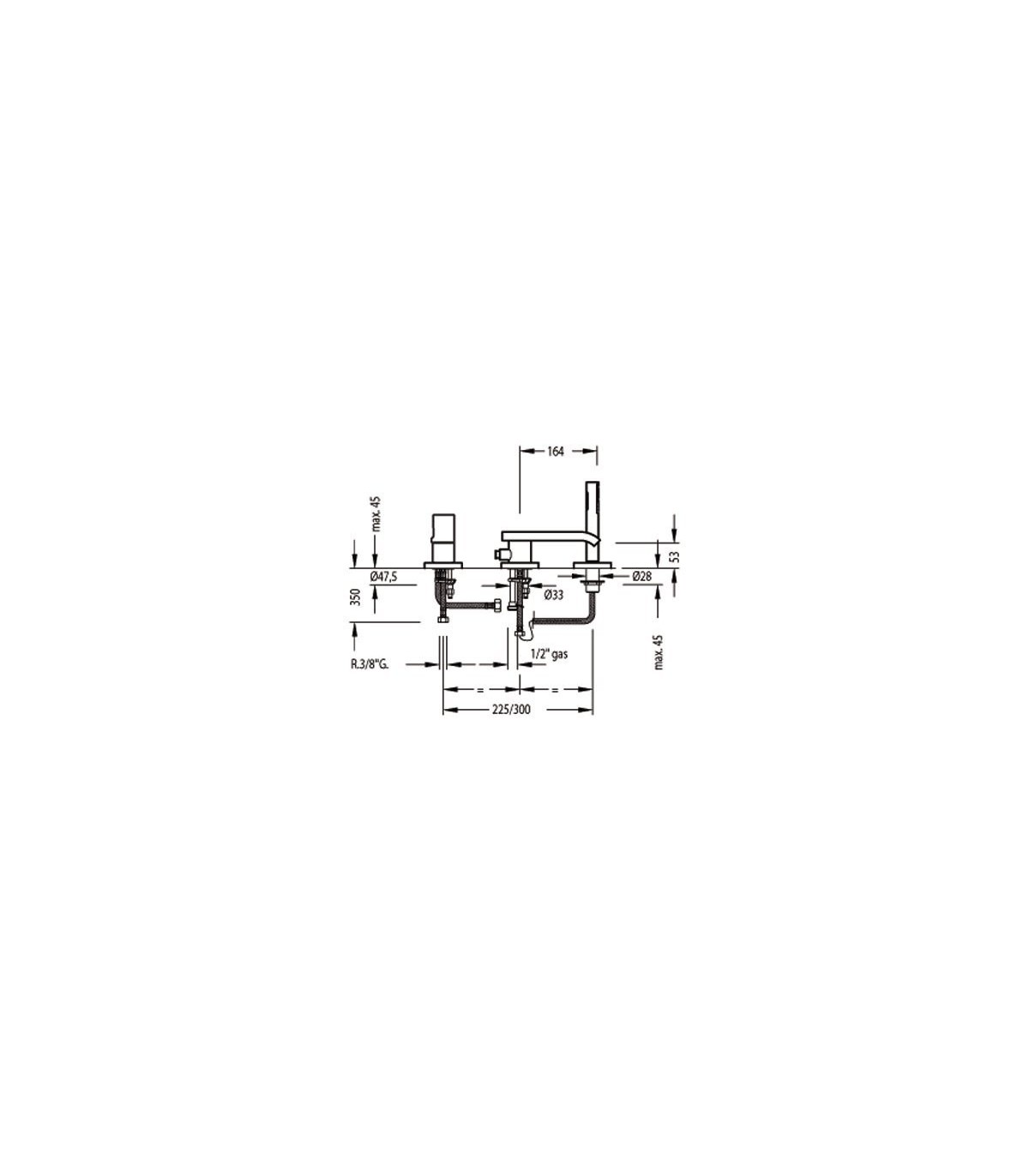 Monomando bañera de repisa MAX con caño cascada y ducha móvil anticalcárea (034.116.01). · Caudal: 3 bar 17 l/m. · Compatible con el kit depósito ref: 1.62.245. Descarga la ficha técnica aquí