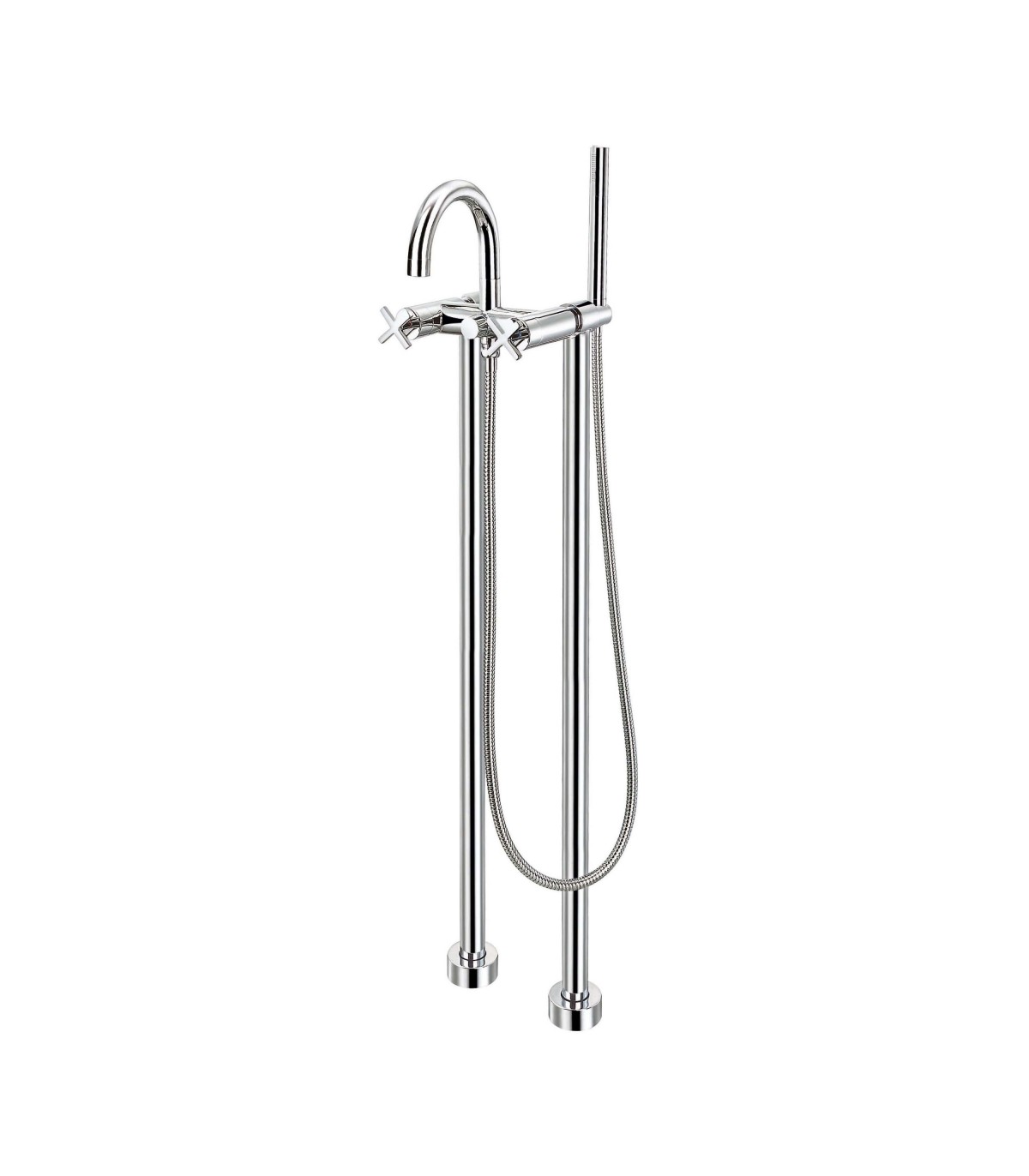 WITH2 MOREA MOREA Grifo de baño ducha bimando fijación suelo, 2 salidas de agua, incluye teléfono, flexo y soporte a pared