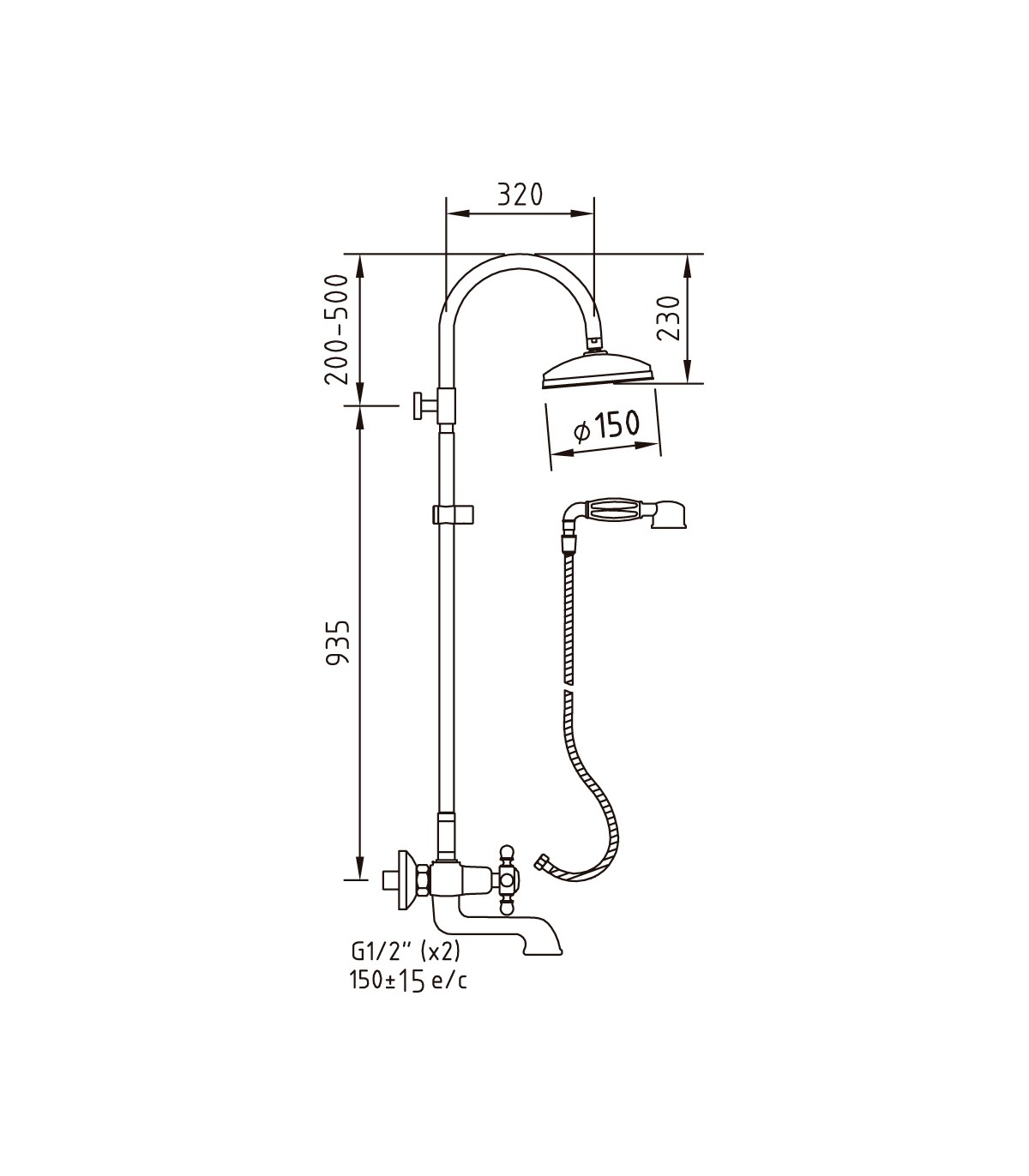 WITH2 ANTIGONA ANTIGONA Columna baño ducha bimando mural extensible, 2 salidas de agua, incluye rociador, teléfono, flexo y soporte a pared