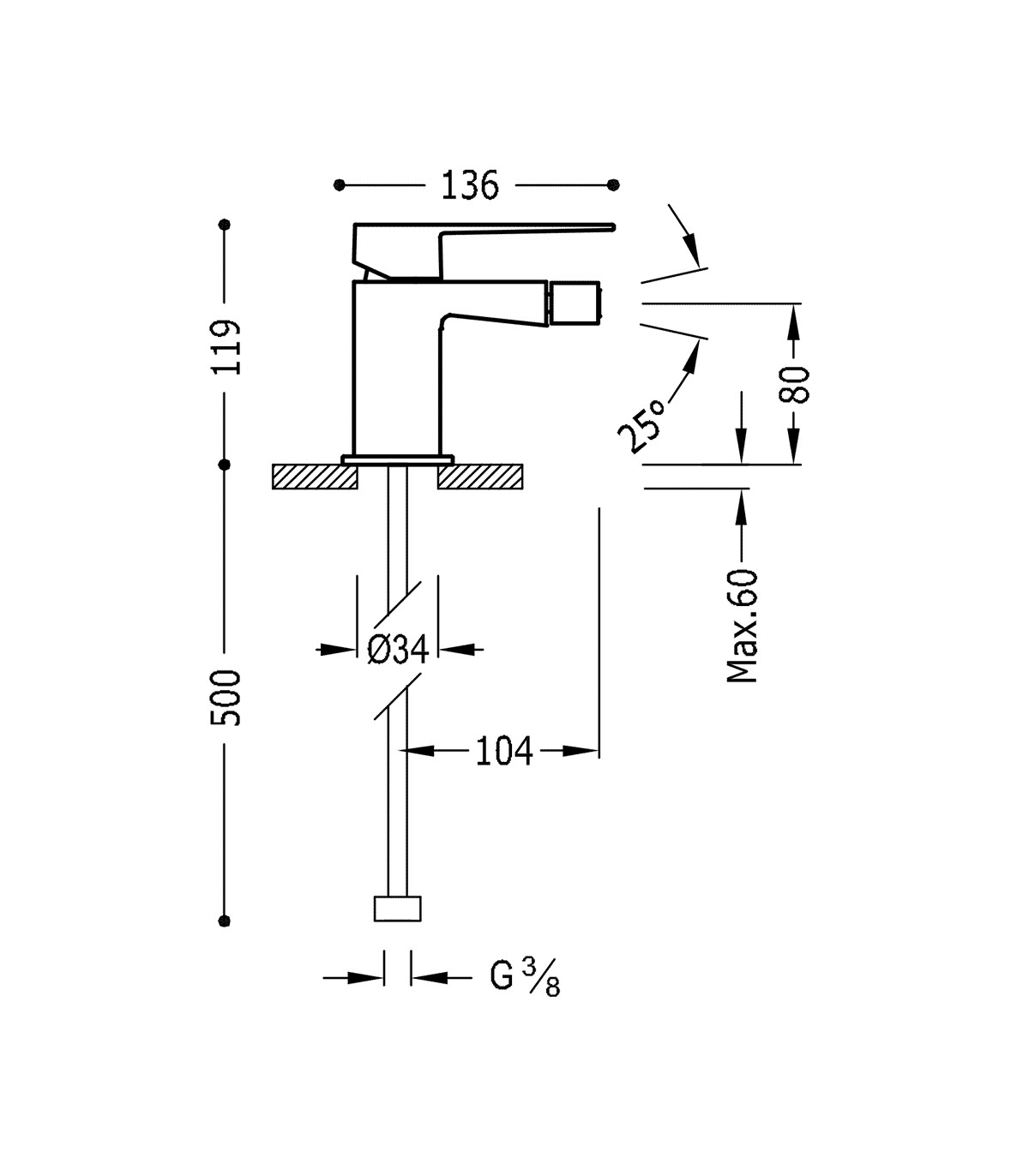 SLIM-TRES 20212001 Grifo Bidé Sin Desagüe