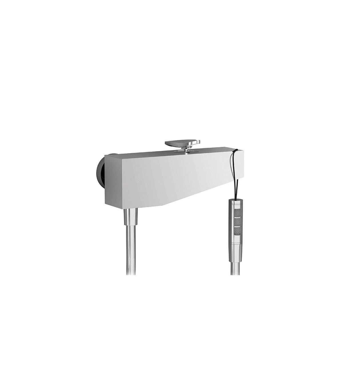 Grifería monomando ducha de diseño vanguardista, de cuerpo compacto y original. La maneta se integra en el cuerpo formando una única superficie visual. Esta fantástica grifería ha sido diseñada por Maurizio Duranti.