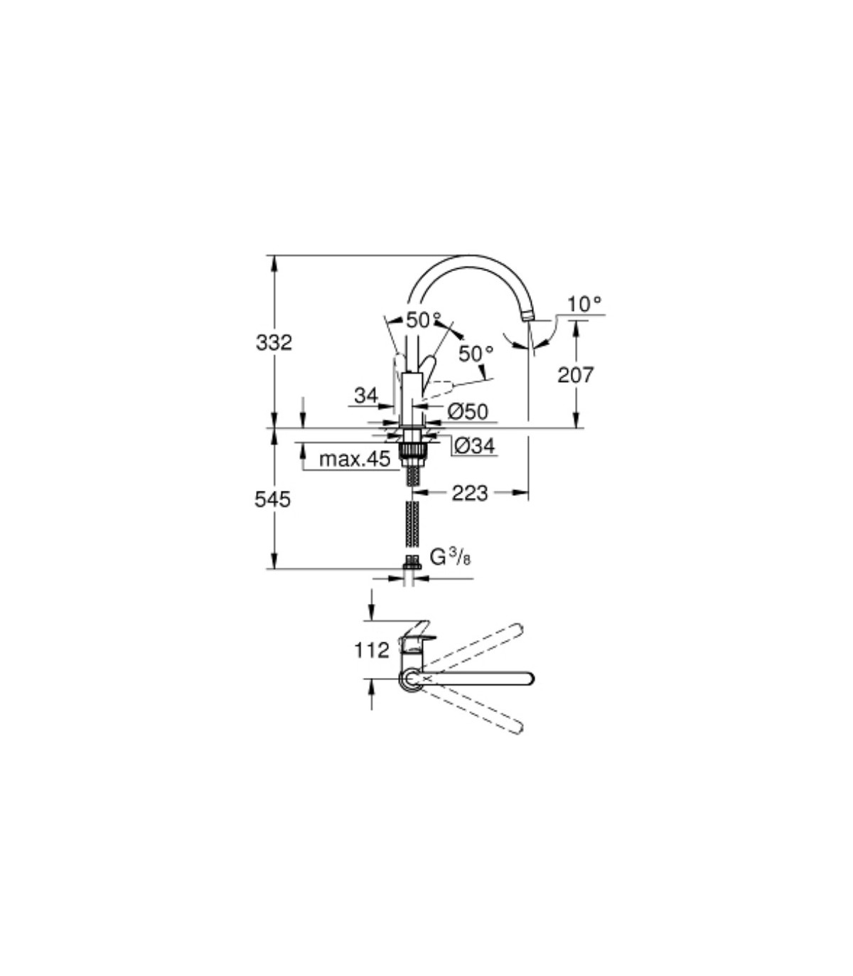 GROHE 31 536 001 BAU CURVE Grifo Monomando Fregadero