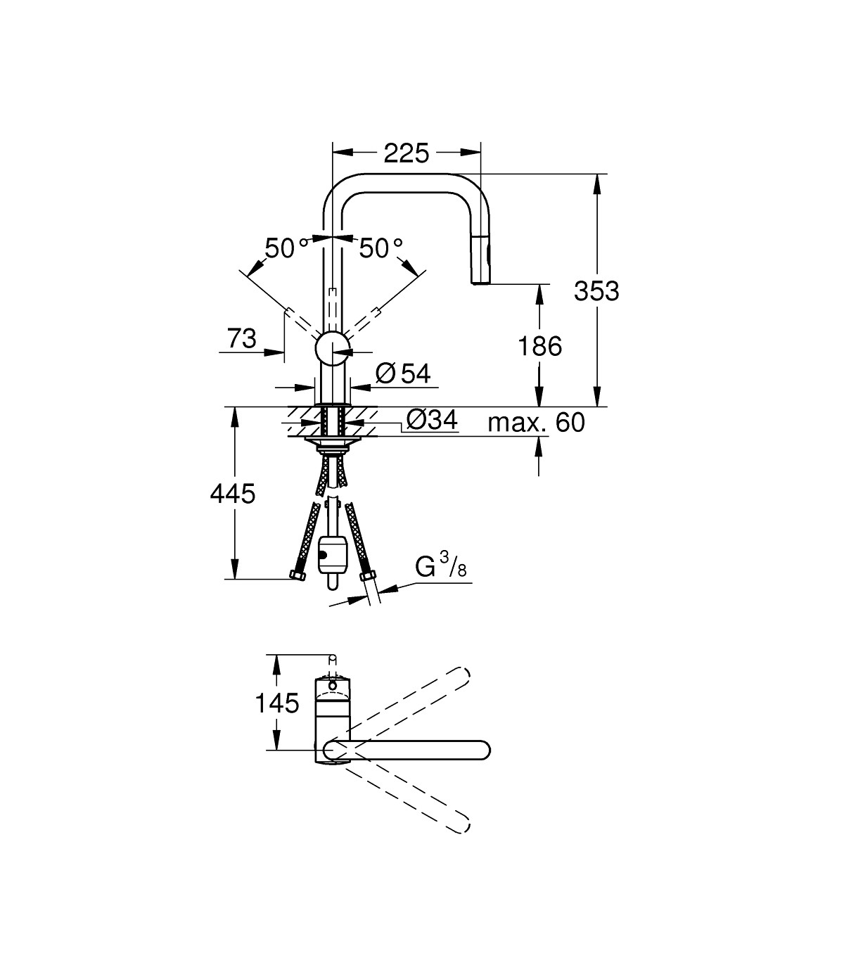 GROHE Minta: grifo monomando de cocina con ángulo de giro ajustable. Este grifo de cocina de GROHE cuenta con un atractivo diseño minimalista y el brillante acabado cromado GROHE StarLight, además de otras muchas y...