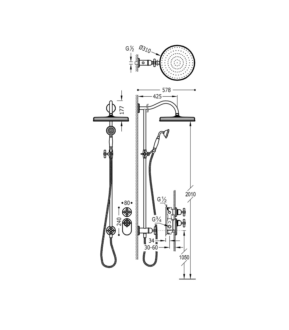 TRES-CLASIC 24235203 Grifo Kit Ducha Termostático Empotrado Cromo
