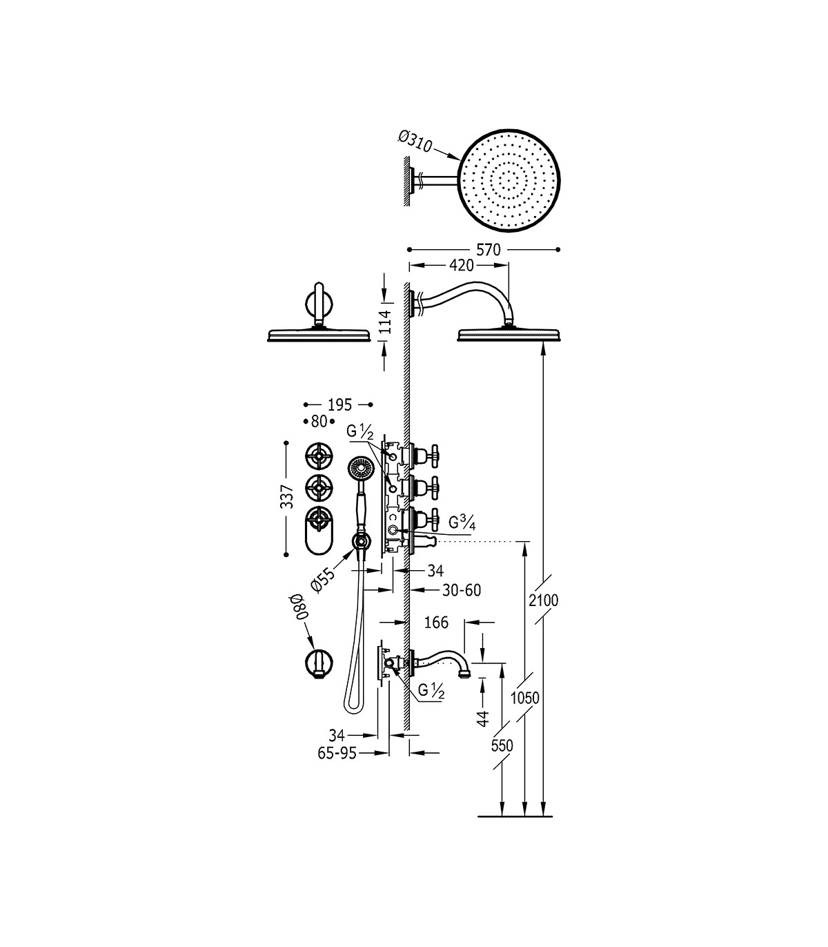 TRES-CLASIC 24235301 Grifo Kit De Bañera Termostático Empotrado Cromo