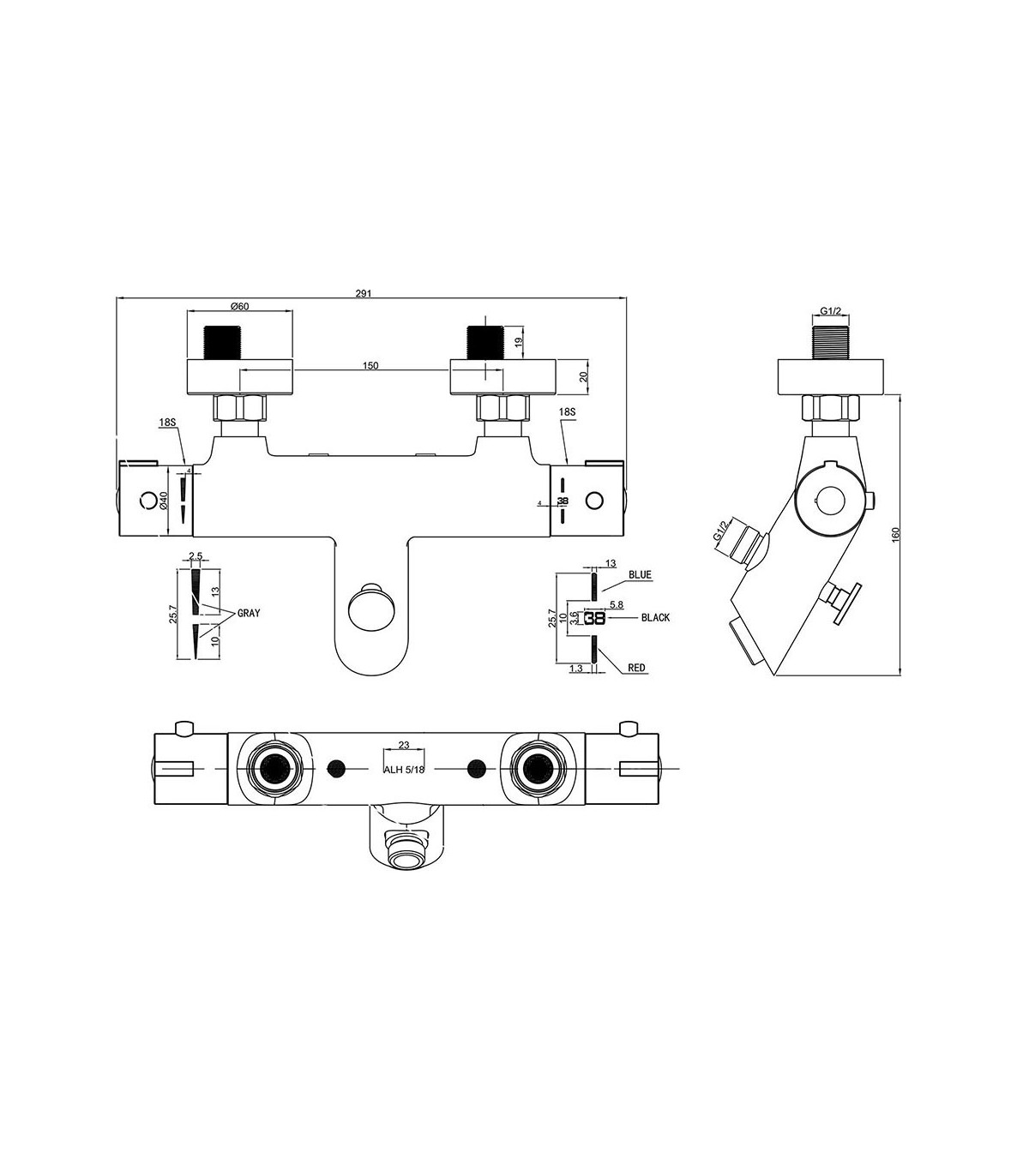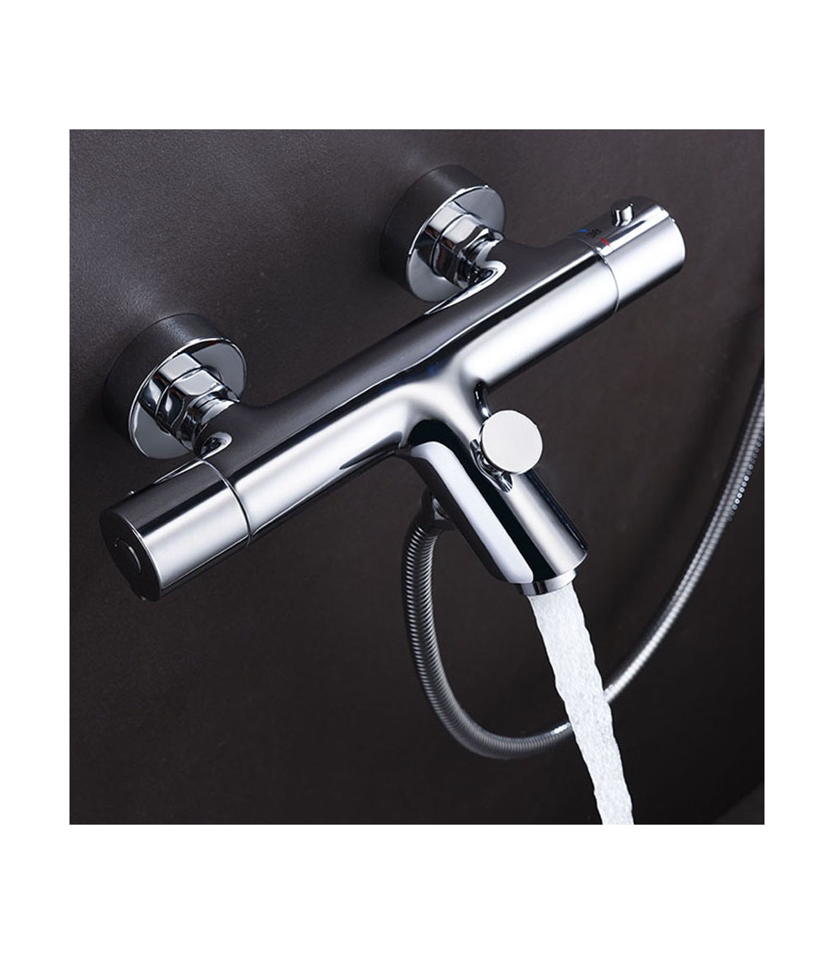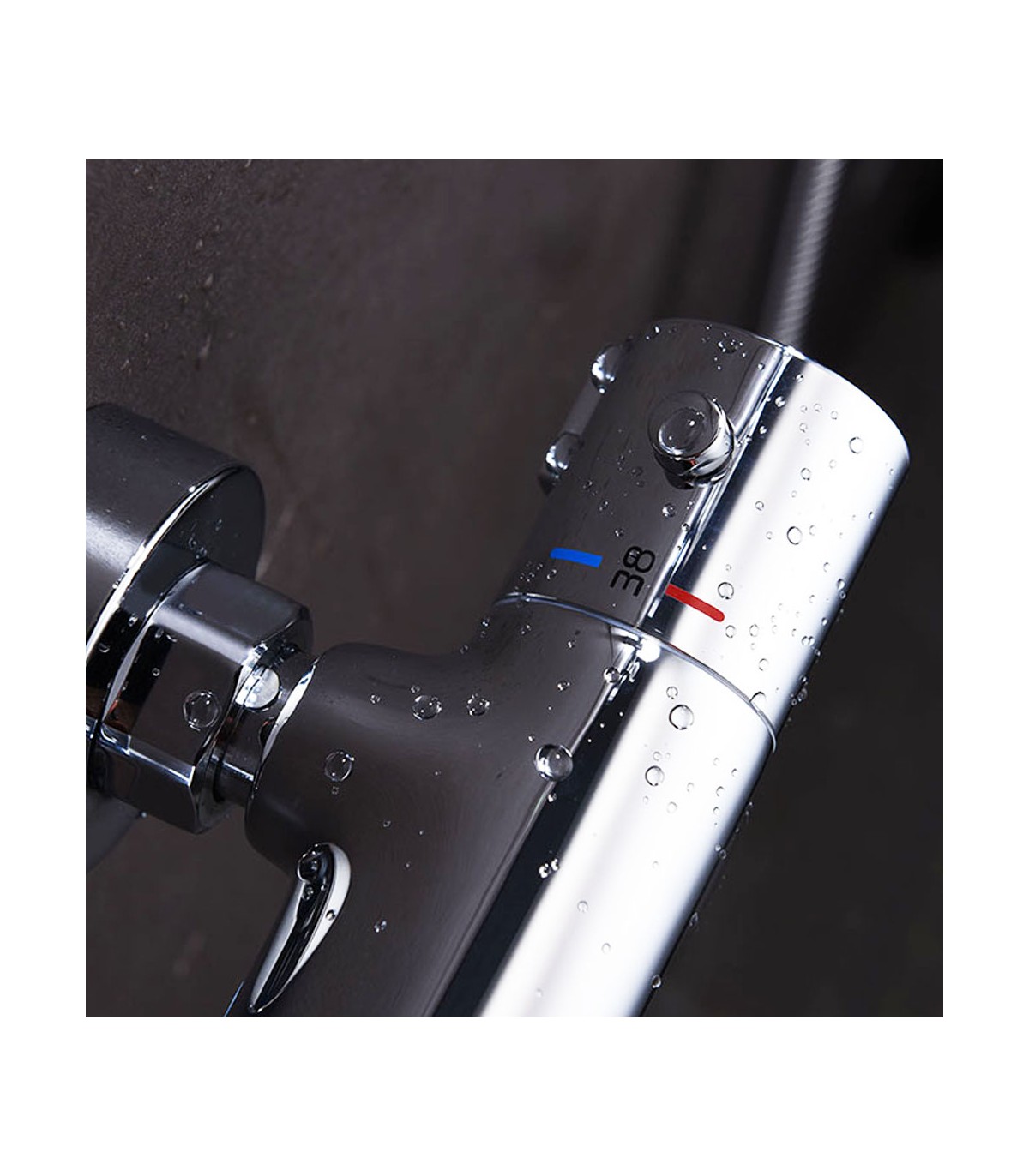 Grifo de ducha termostática Bonn Latón. Grifo termostático de bañera con manetas de latón y montura cerámica, con indicador numérico de temperatura y botón de seguridad antiquemaduras. 2 vías.