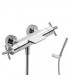 Conjunto de grifería de ducha compuesto por barra de ducha MONO-TERM®, Ducha fija Ø 250 mm. (1.34.137.26), Ducha móvil masaje Ø 100 mm. (5 funciones) (1.34.748), Flexo SATIN (91.34.609.15) y Barra telescópica.