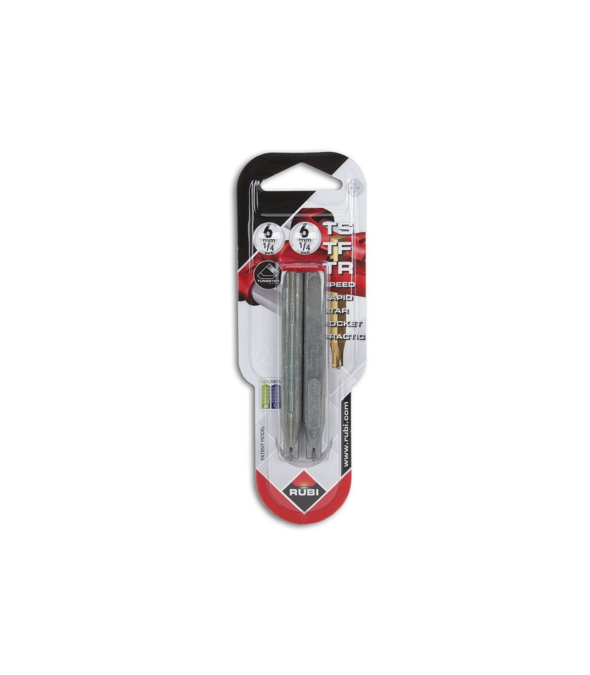 Conjunto formado por un rodel de Ø6 mm y un rodel de Ø10 mm de RUBI. Los rodeles de Ø6 y 10 mm de RUBI incorporan rulinas fabricadas en carburo de tungsteno de alta resistencia al desgaste. El exclusivo mecanizado y afilado de la rulina del rodel de Ø6 mm de RUBI permiten, a este rodel, ofrecer una excepcional calidad en el rayado de baldosas cerámicas para revestimiento (tipo BIII).