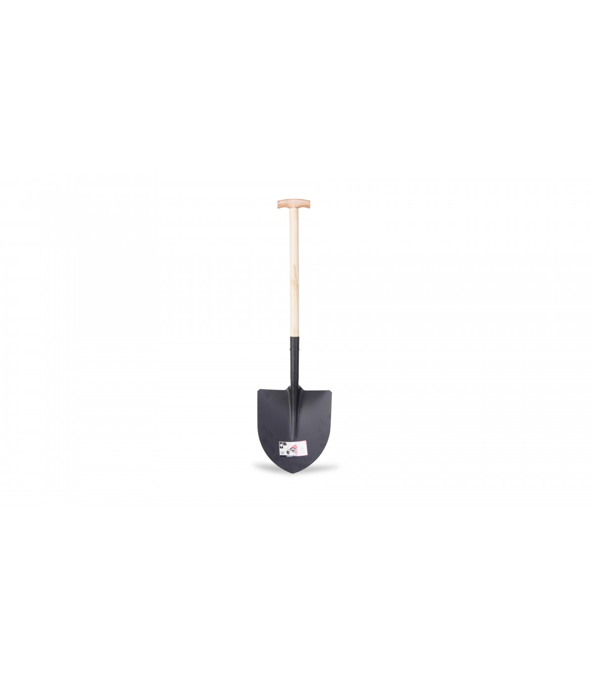 Pala con acabado de punta. Mango con asa en T. Madera de eucalipto barnizado.