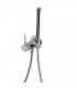 Grifo monomando empotrado para bidé/WC con soporte derecha o izquierda (cambiable). Ducha de latón con racord limitador 5 l/m. Antigoteo y flexo SATIN con acabado cromado.