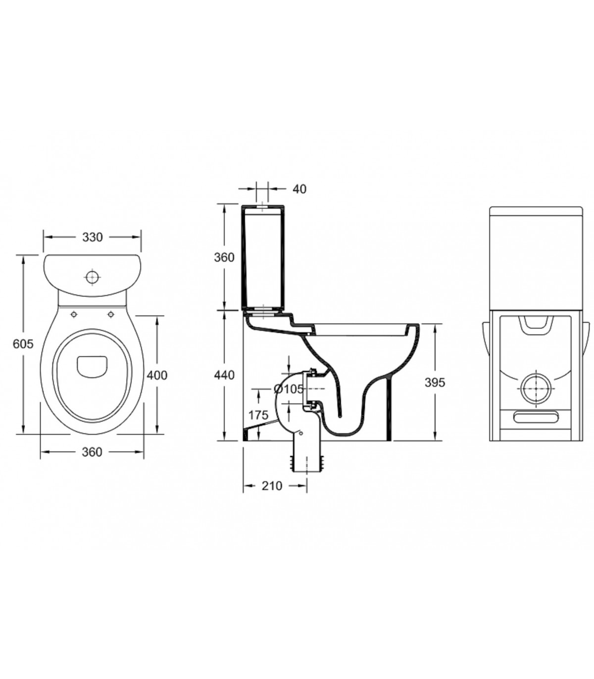 DURIUS inodoro COMPACTO BTW de Valadares compuesto por taza salida dual, cisterna completa de alimentación inferior y pulsador de doble descarga. Tapa asiento termodur de caída normal (no disponible con caída amortiguada). Incluye kit de fijación y manguito de conexión a suelo o a pared.