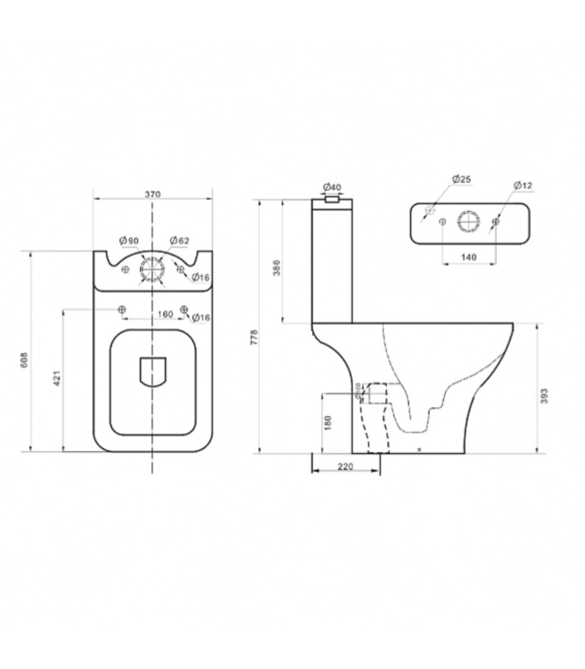 Inodoro completo de pie abierto con un diseño compacto y moderno con formas curvas. El pack está compuesto por una taza con salida dual y entrada de agua inferior a ambos lados con juego de fijaciones y embellecedores, tanque con alimentación inferior, mecanismo de doble descarga con dos pulsadores de 4.5L/3L y tapa y asiento extraplano con caída amortiguada.