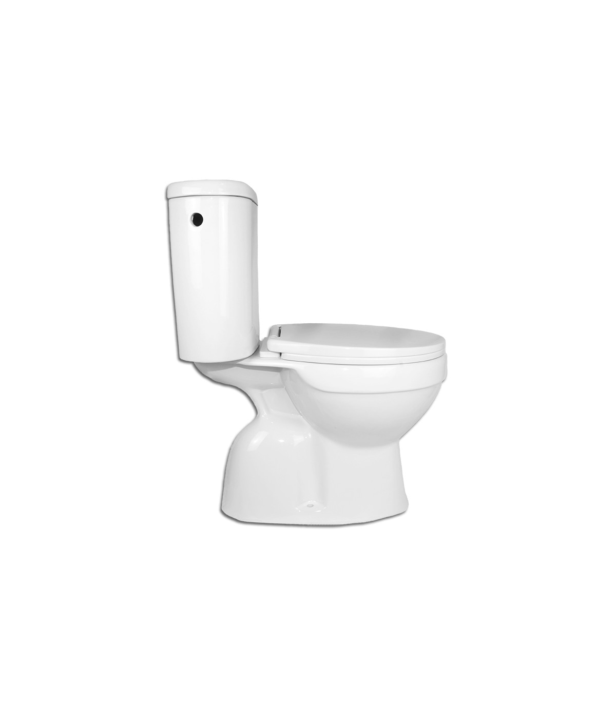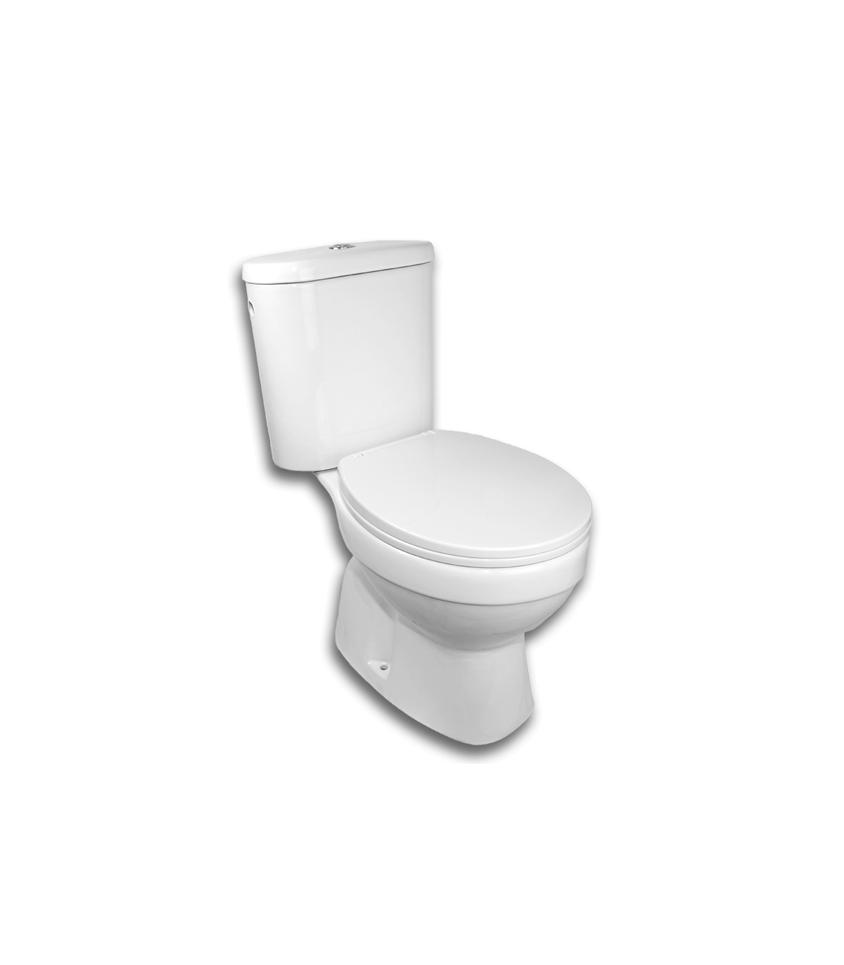Inodoro completo compacto y moderno. La parte frontal tiene una actual y elegante forma redondeada. El pack está compuesto por: taza con salida al suelo con juego de fijaciones y embellecedores, tanque con alimentación superior, mecanismo de doble descarga con dos pulsadores de 6L/4L y tapa y asiento.